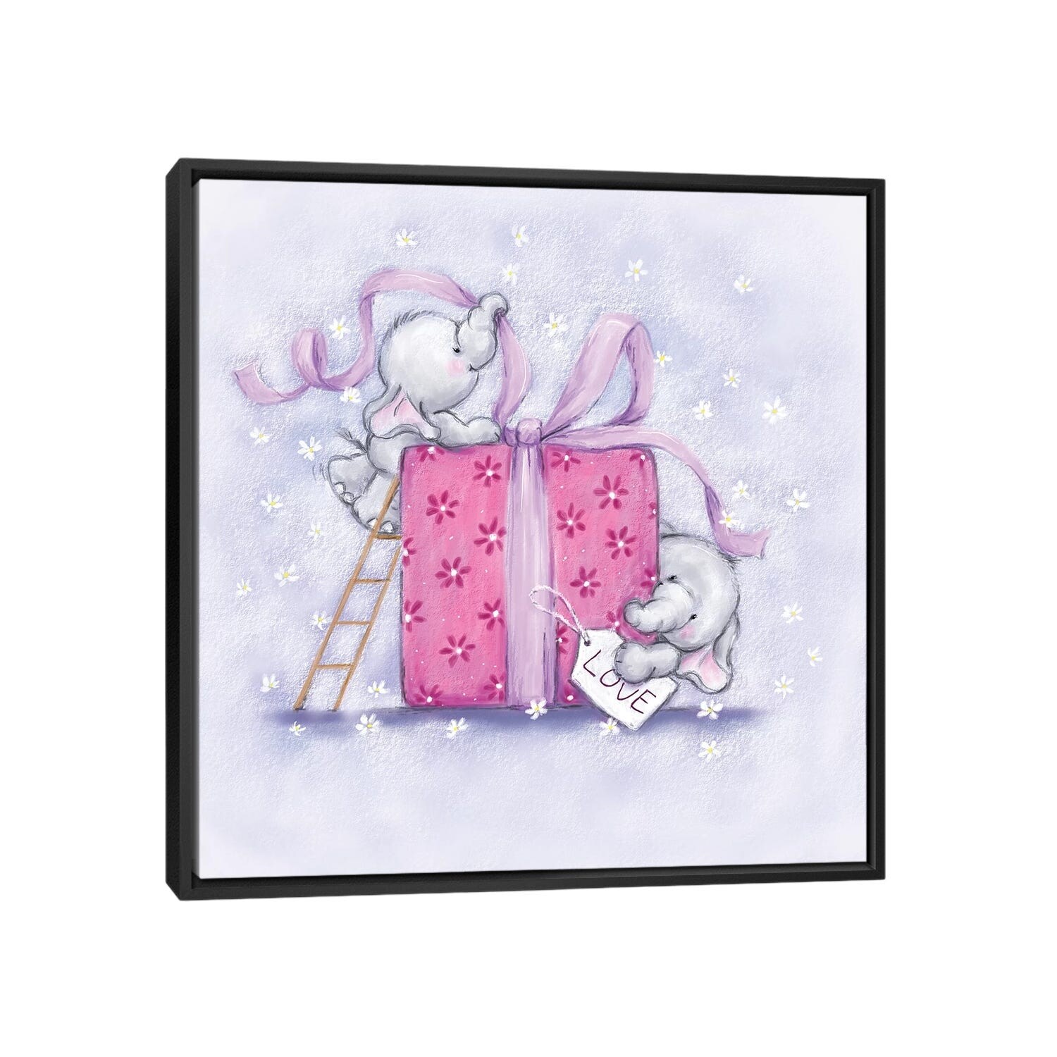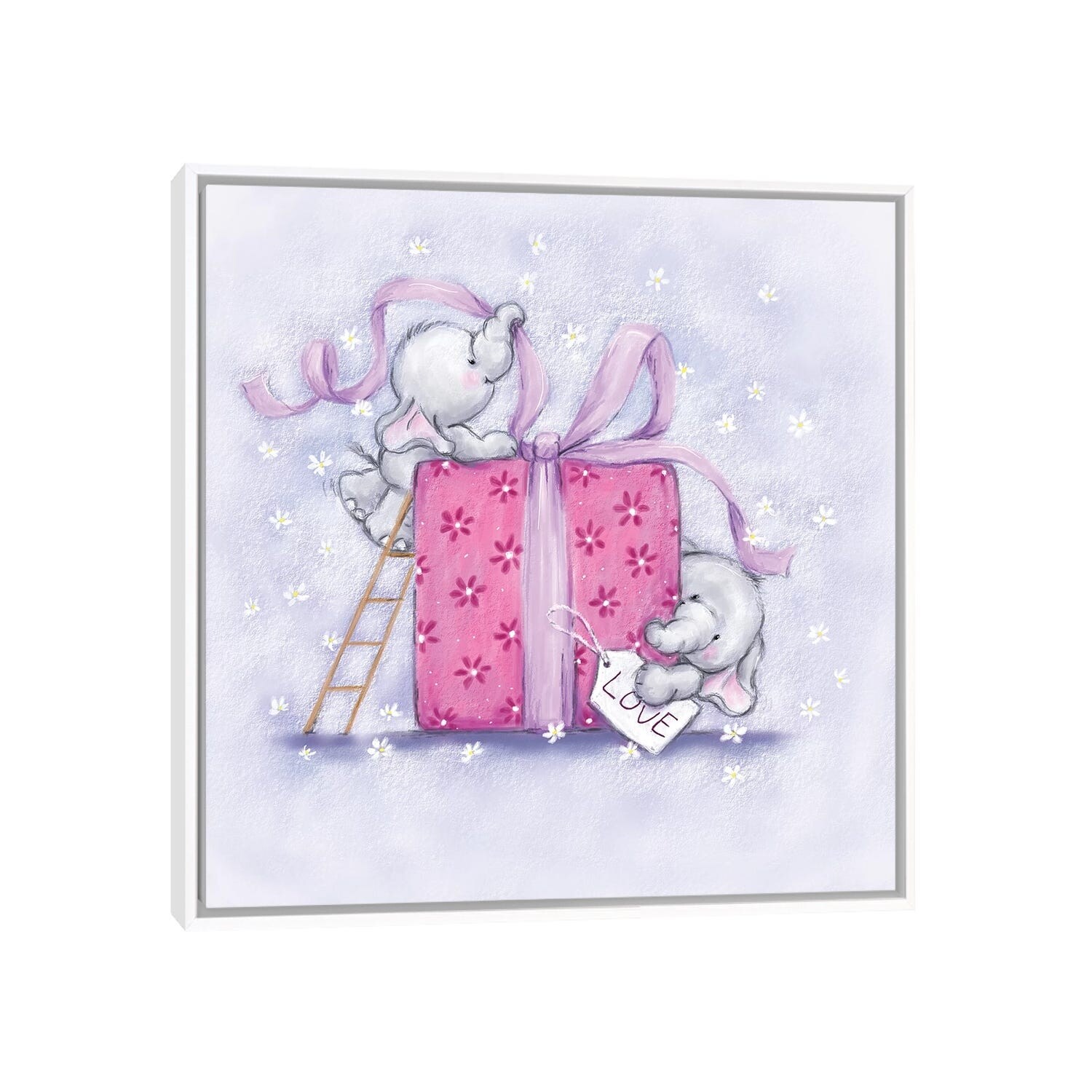 iCanvas "Two Elephants with Present" by MAKIKO Framed Canvas Print
