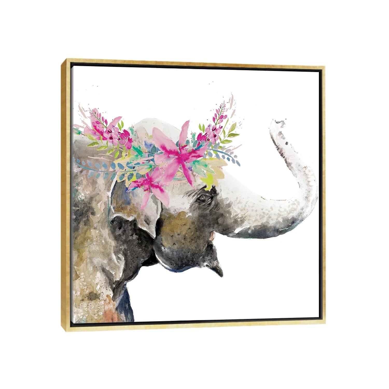 iCanvas "Water Elephant with Flower Crown" by Patricia Pinto Framed Canvas Print