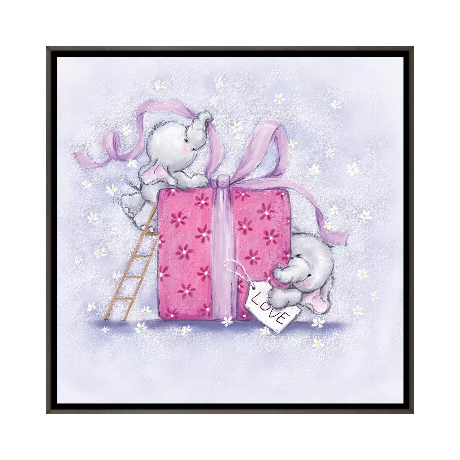 iCanvas "Two Elephants with Present" by MAKIKO Framed