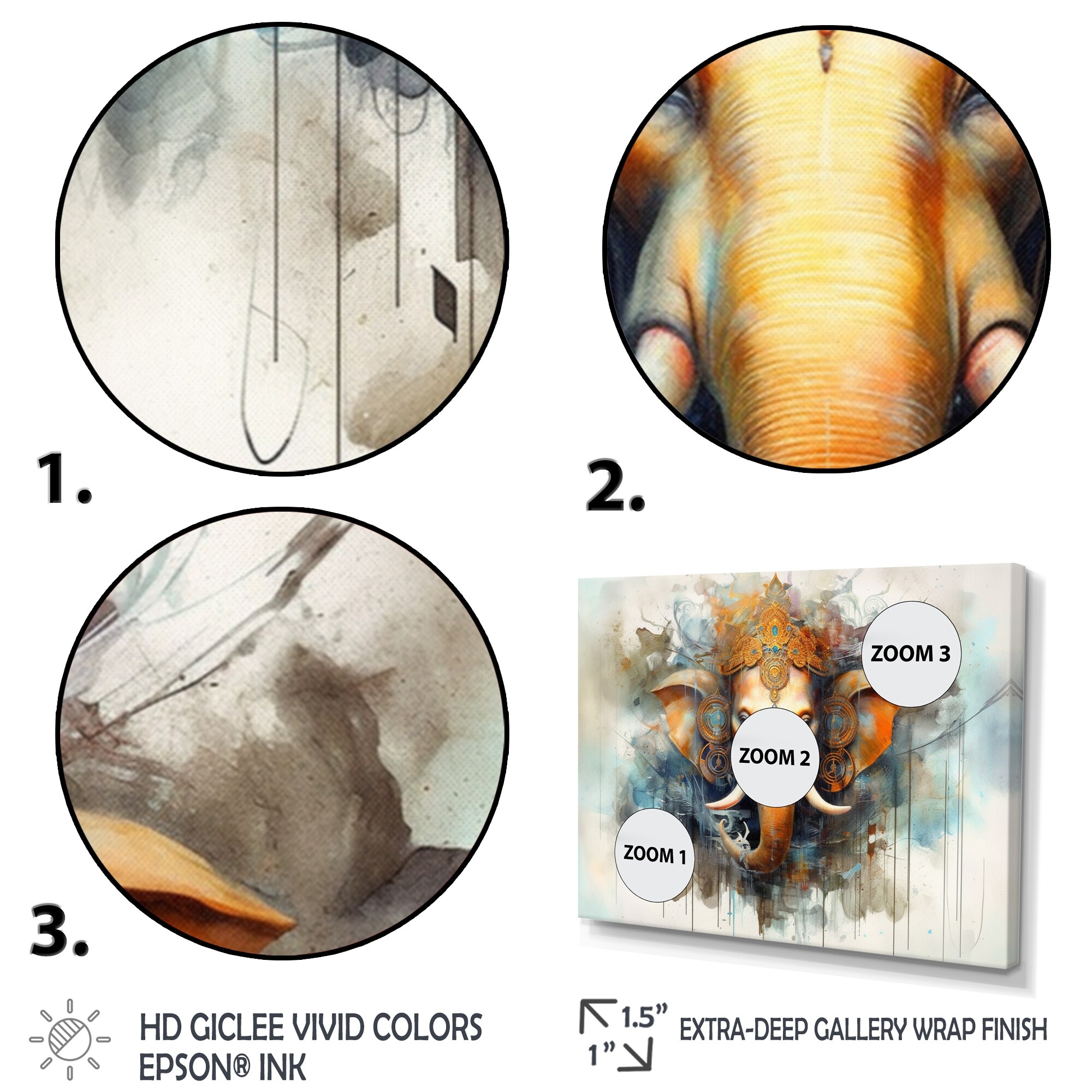 Designart "Vibrant Hinduisim Elephant I" Hinduisim Framed Canvas Print