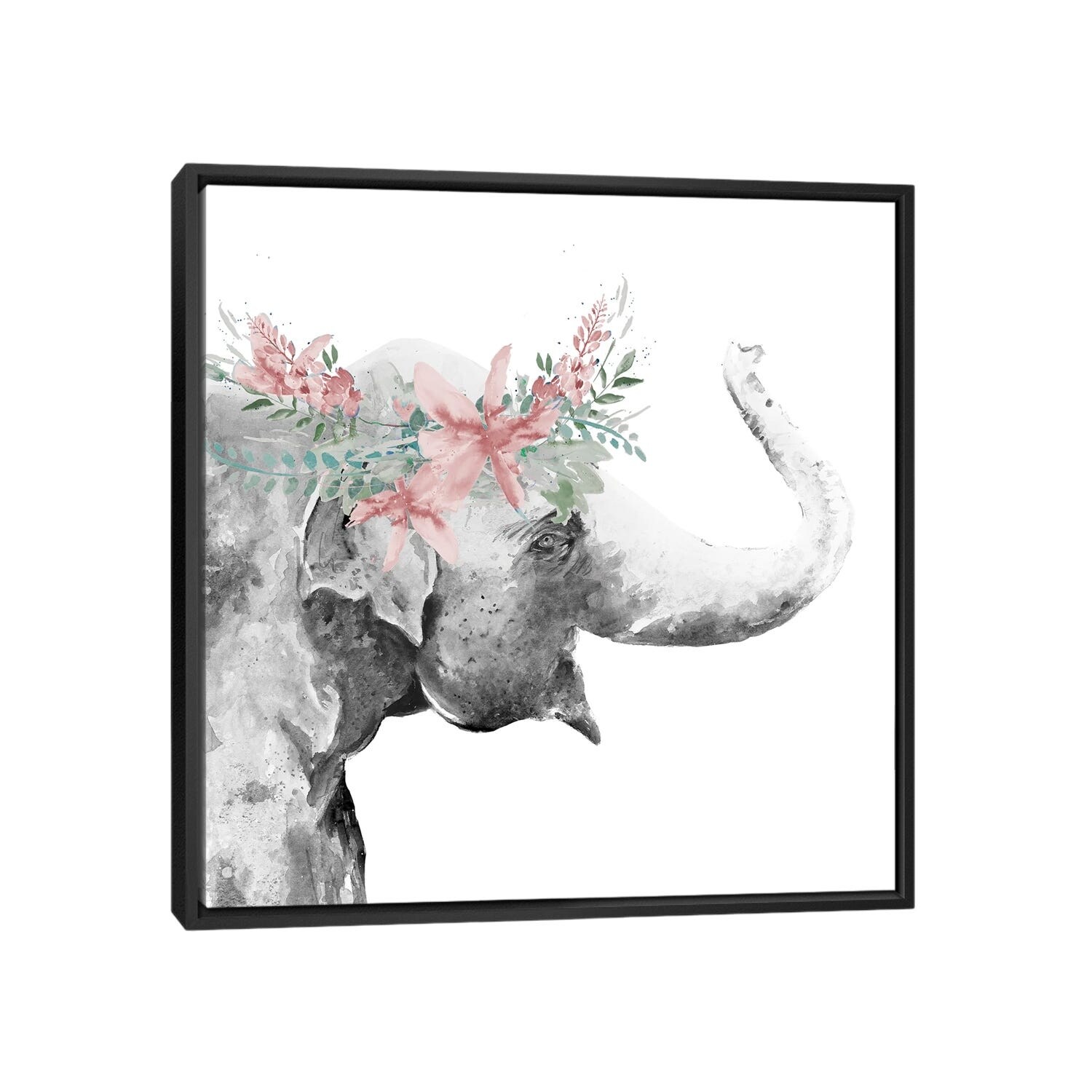 iCanvas "Watercolor Elephant And Flowers" by Riza Peker Framed