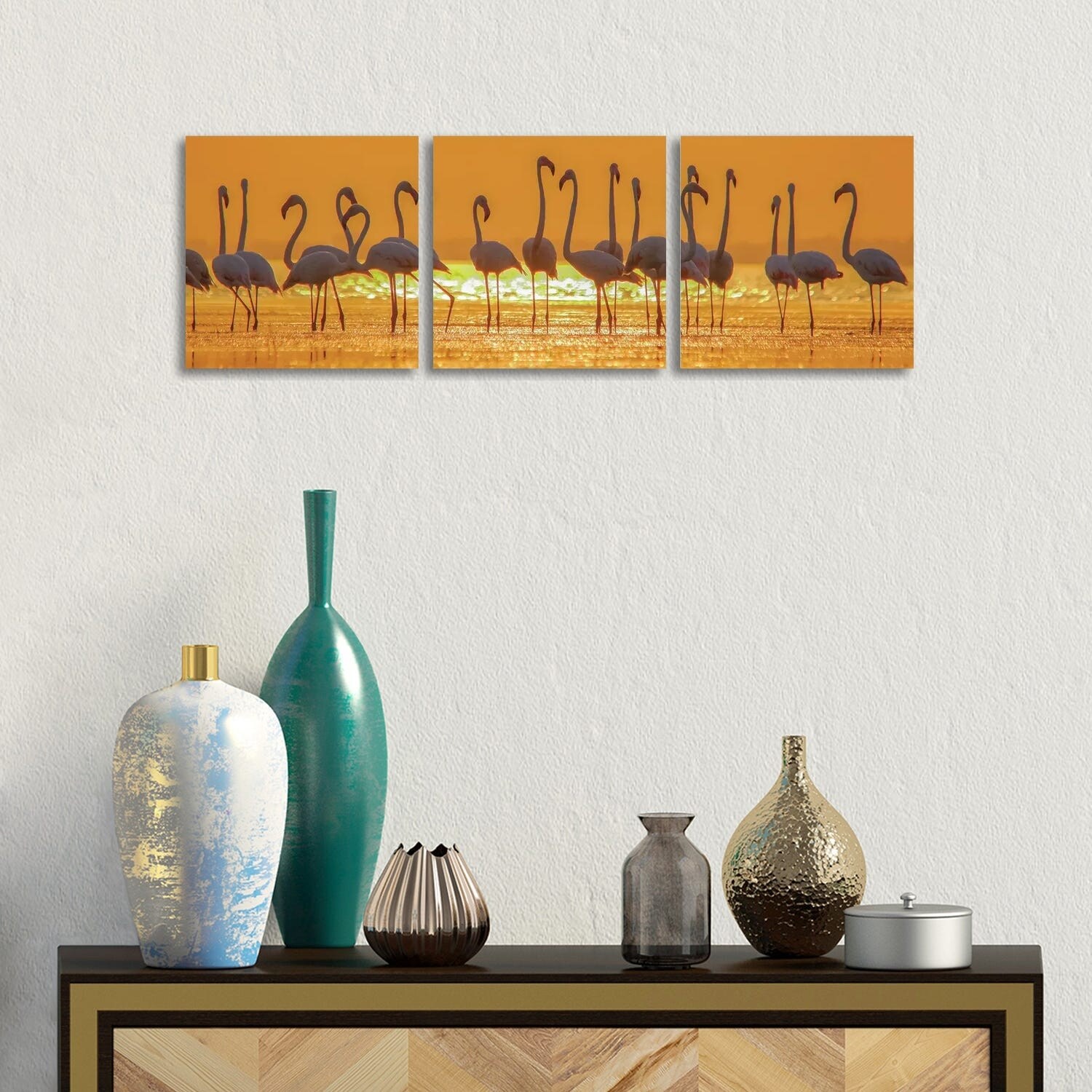 iCanvas "Flamingo Flock in Sunset" by Nitin Sonawane 3-Piece Wall Art Set