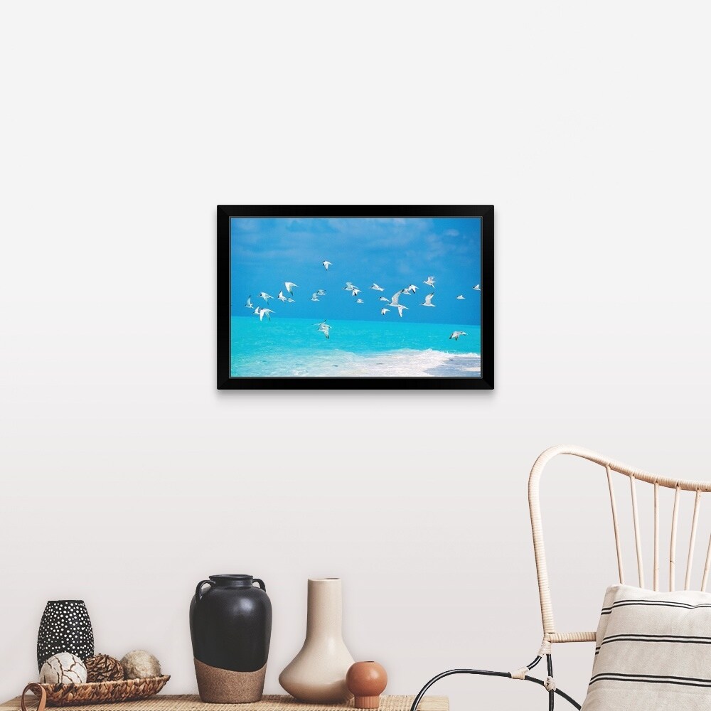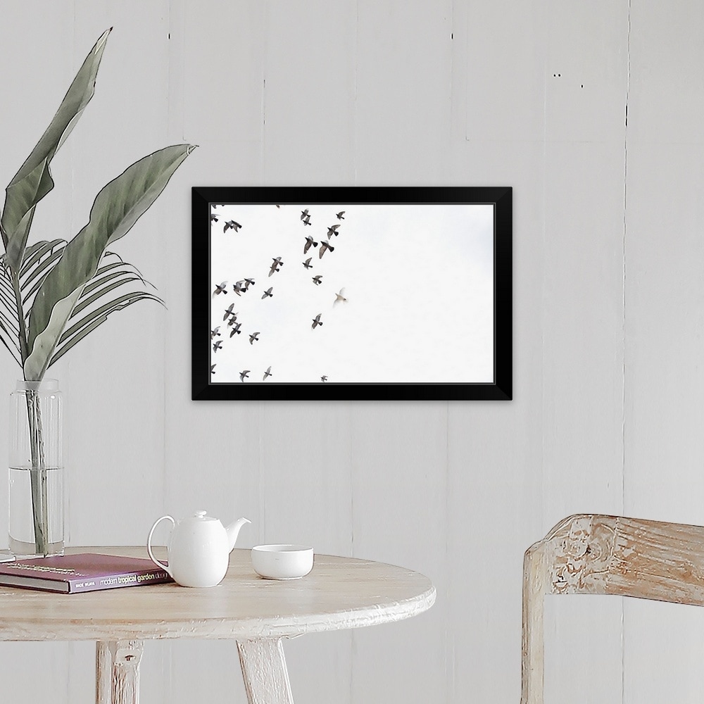 Designart "Flock Of Birds Flying on Pastel Background Silhouttes of Wings I" Lake House Framed Canvas Wall Art Print