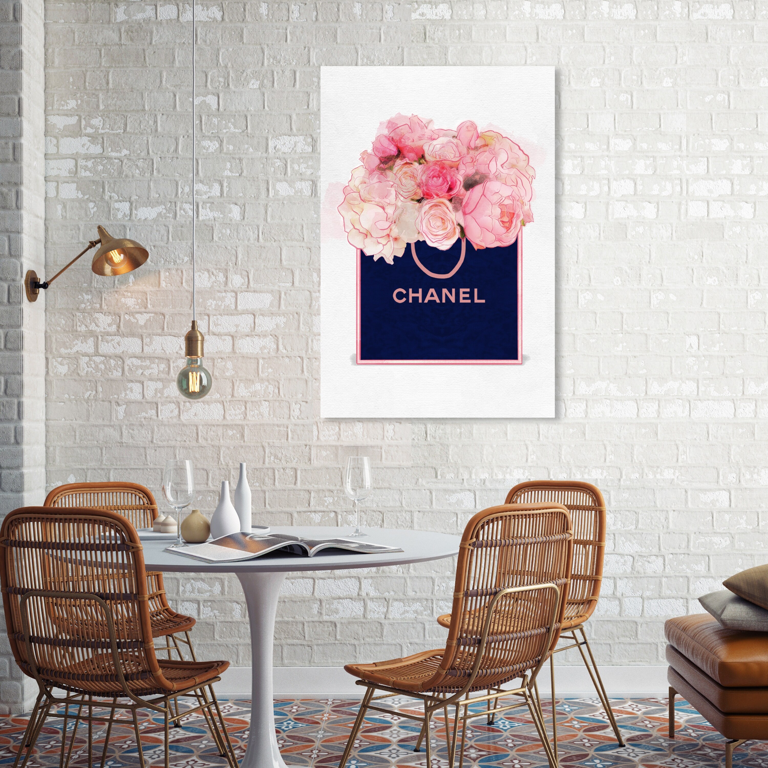 Oliver Gal 'Flower Bag Flocked' Fashion and Glam Wall Art Canvas Print Lifestyle - Blue, Pink