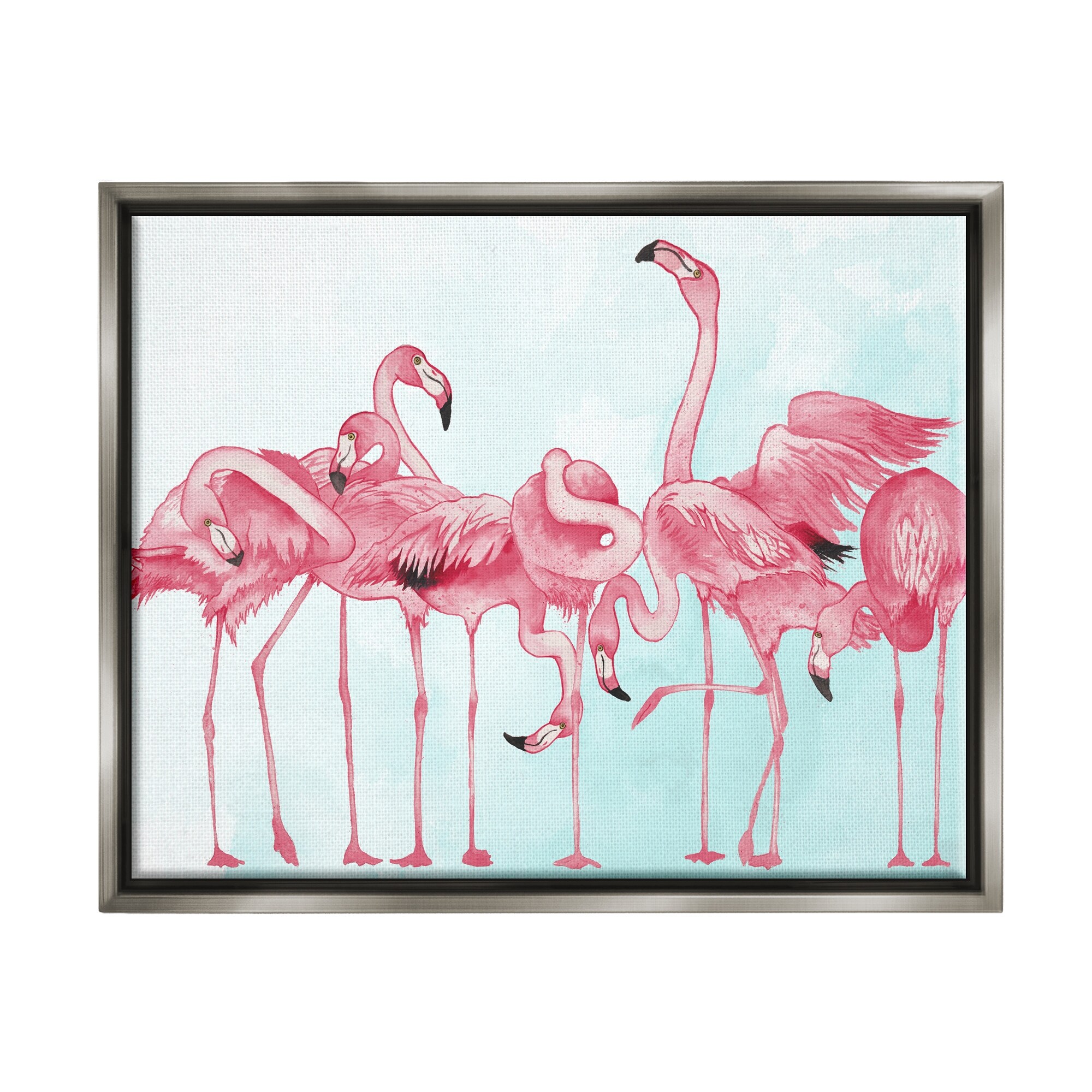 Stupell Industries Bold Pink Flamingo Flock Framed Floater Canvas Wall Art by Elizabeth Medley