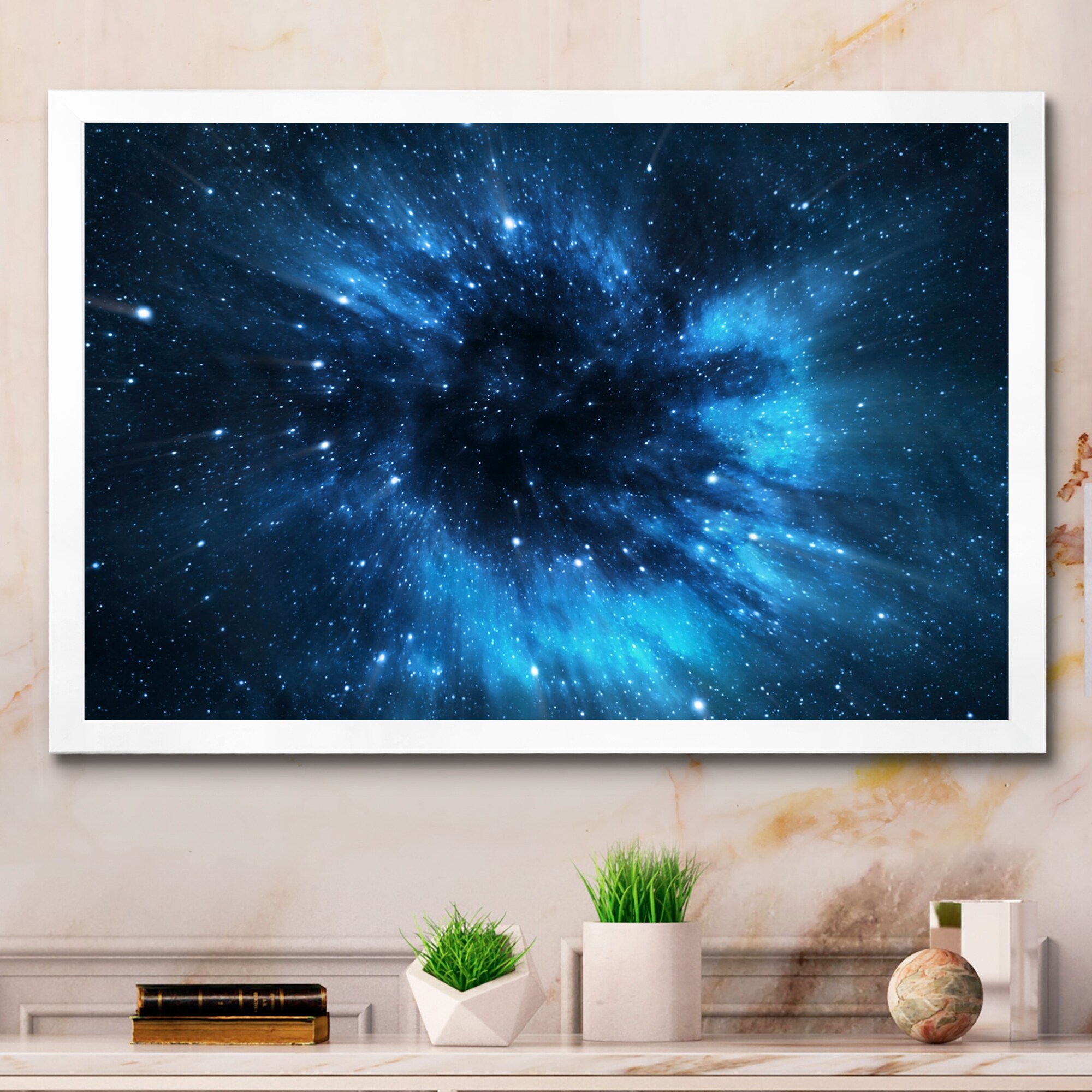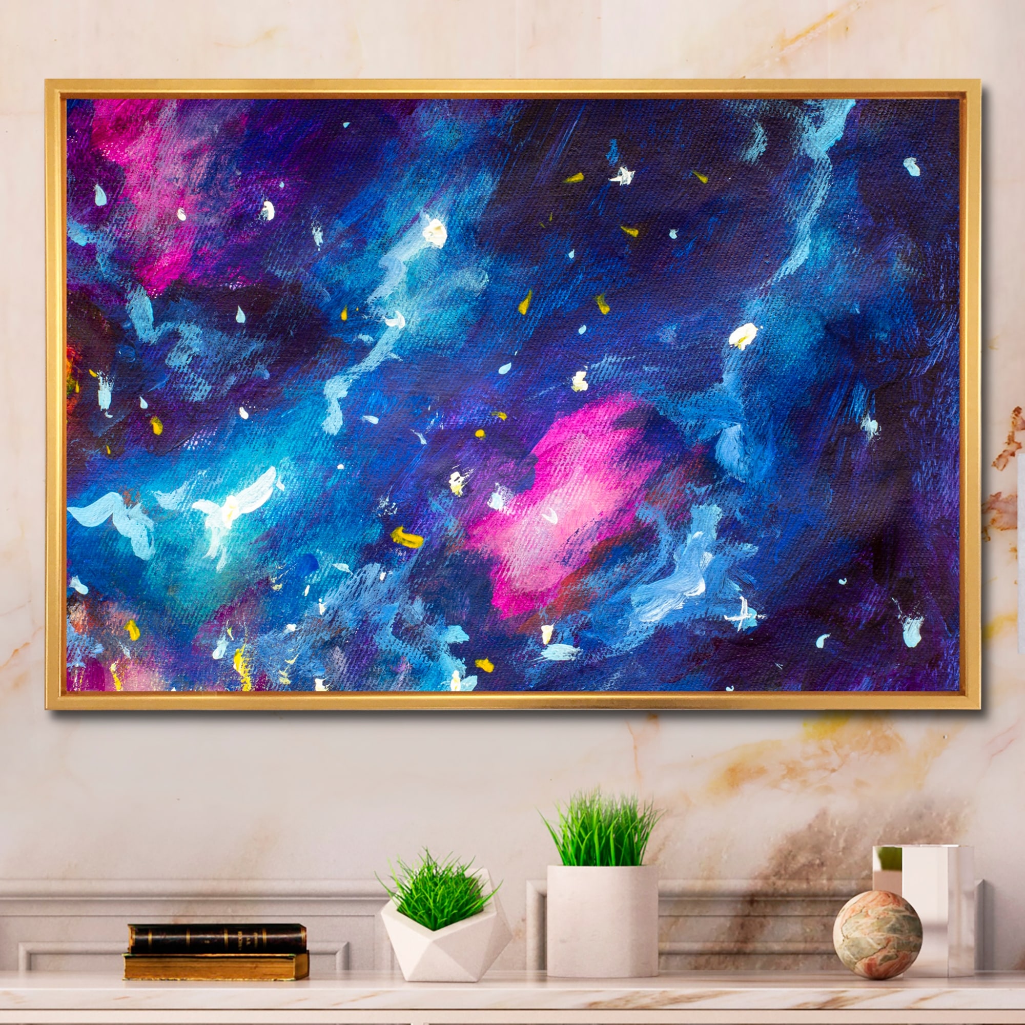 Designart "Blue Violet Galaxy" Modern Framed Canvas Wall Art