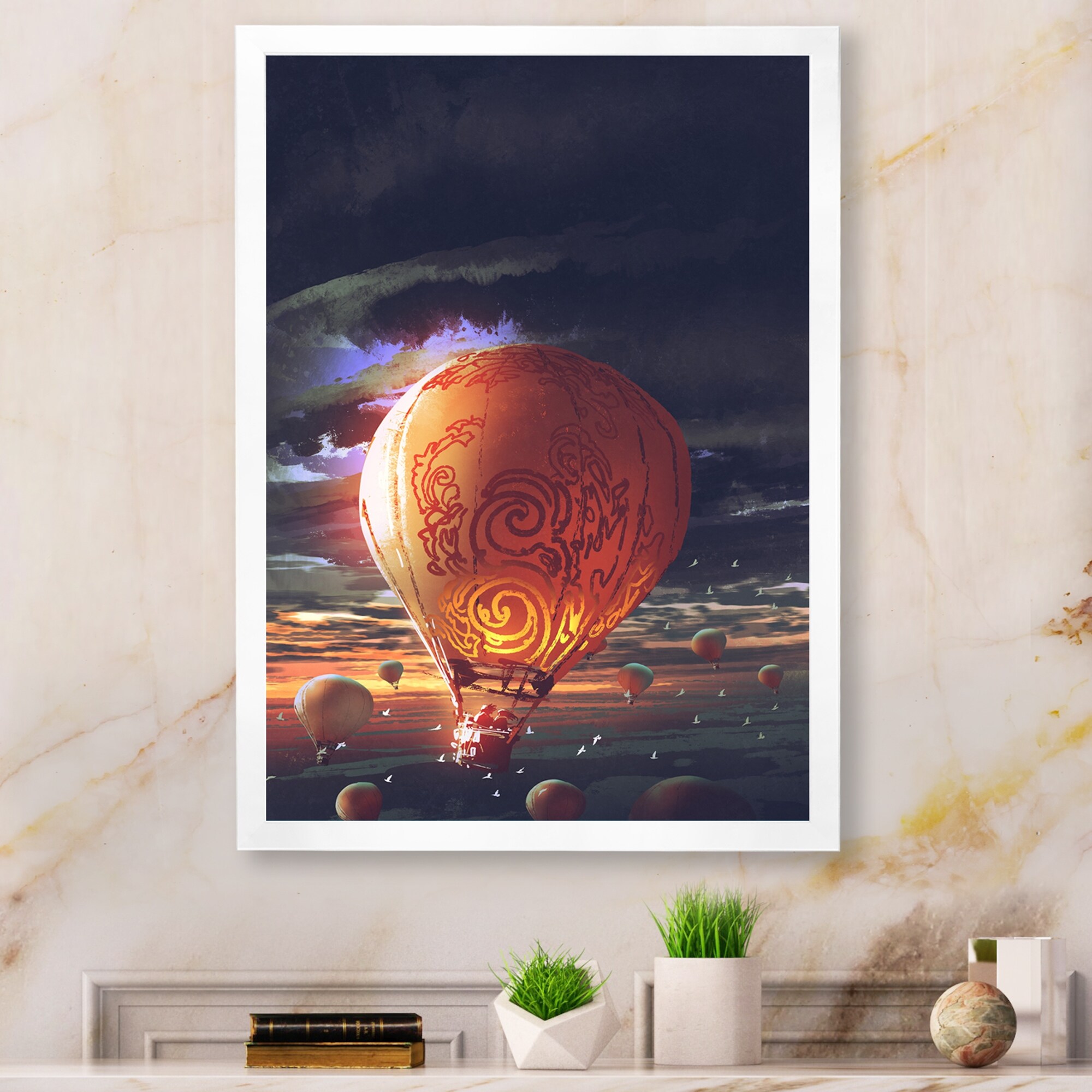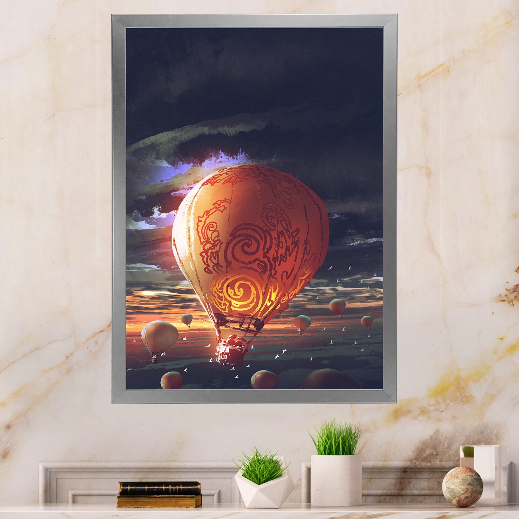 Designart "Video Game Hot Air Balloon Floating in Galaxy" Modern Framed Wall Art