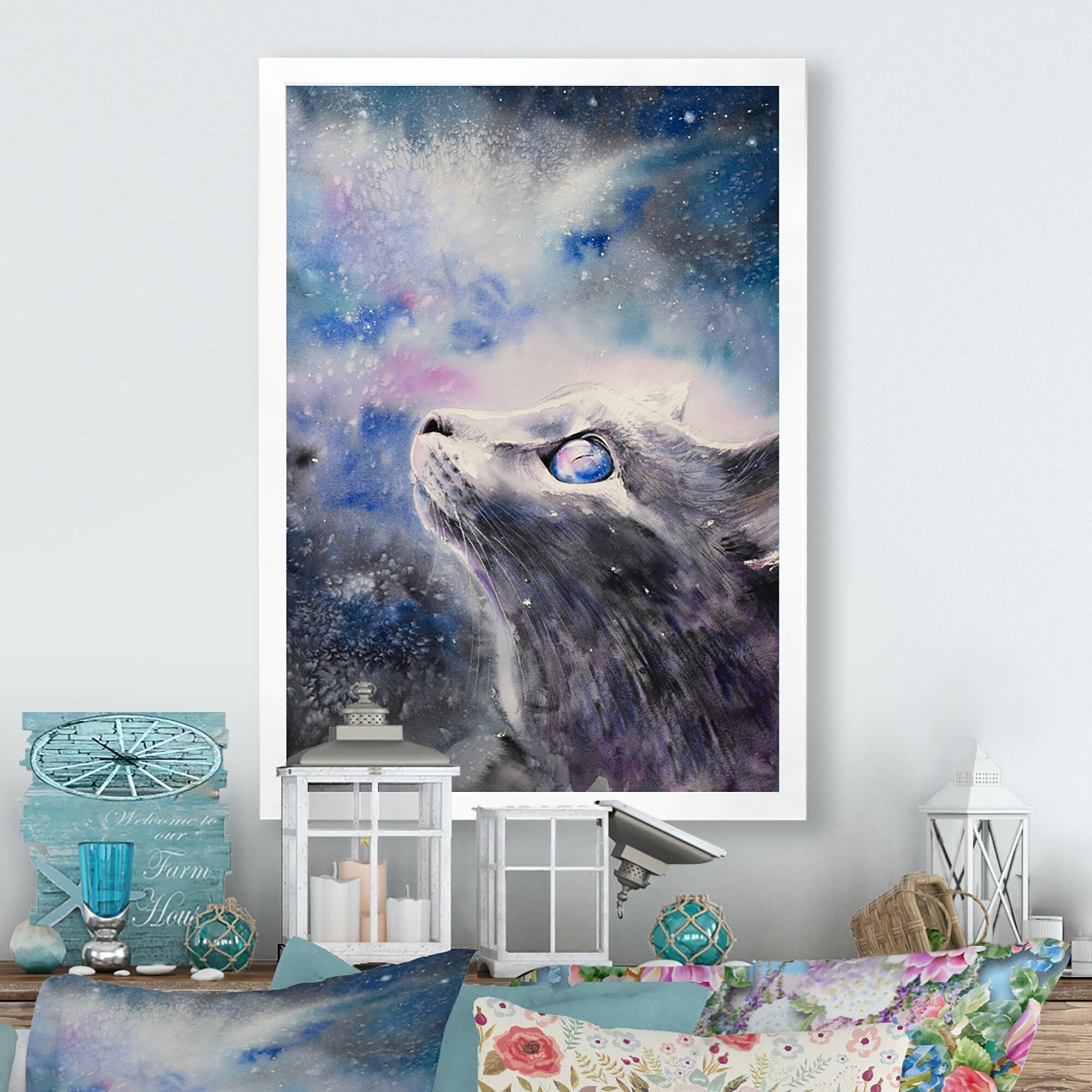 Designart "Blue Cat in Futuristic Galaxy" Traditional Framed Children's Art Print