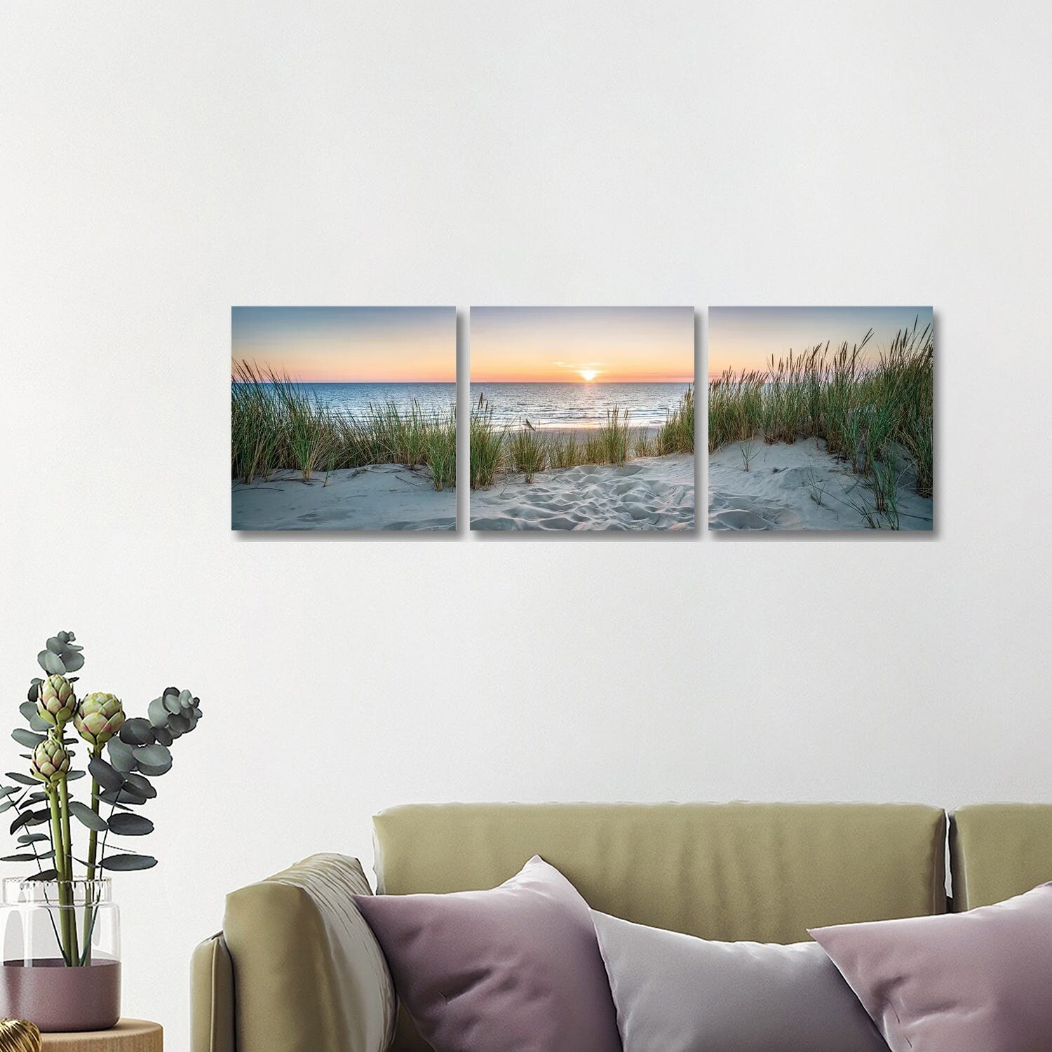 iCanvas "Dune beach panorama at sunset, North Sea coast, Germany" by Jan Becke 3-Piece Canvas Wall Art Set