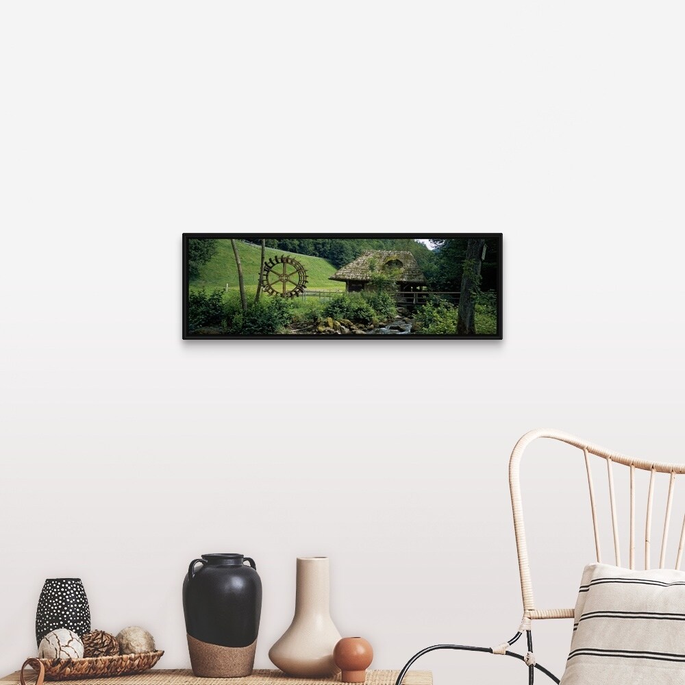 "Watermill at a river, Black Forest, Glottertal, Germany" Black Float Frame Canvas Art