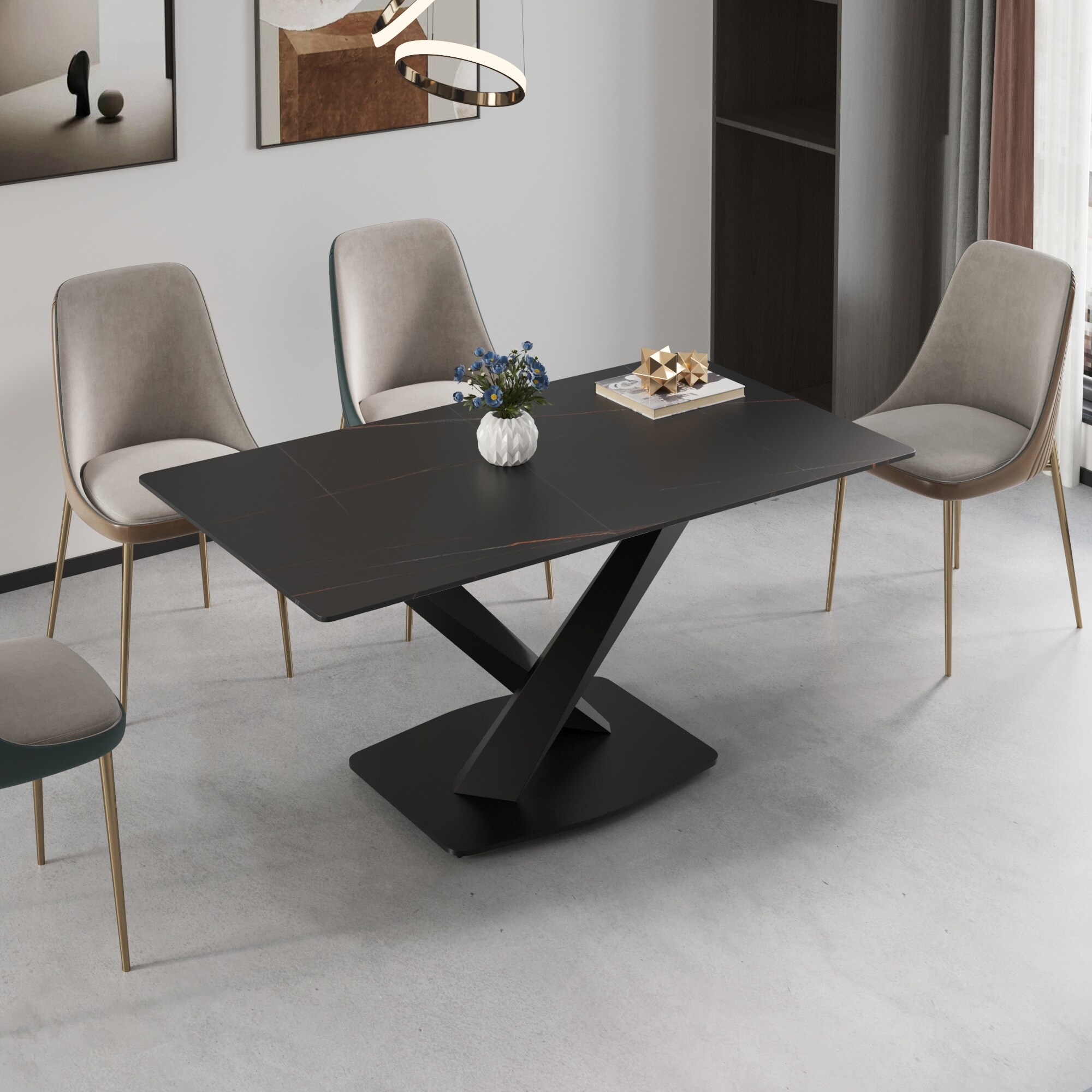 63" Modern Rectangular Sintered Stone Dining Table with Black X-Shaped Carbon Steel Legs