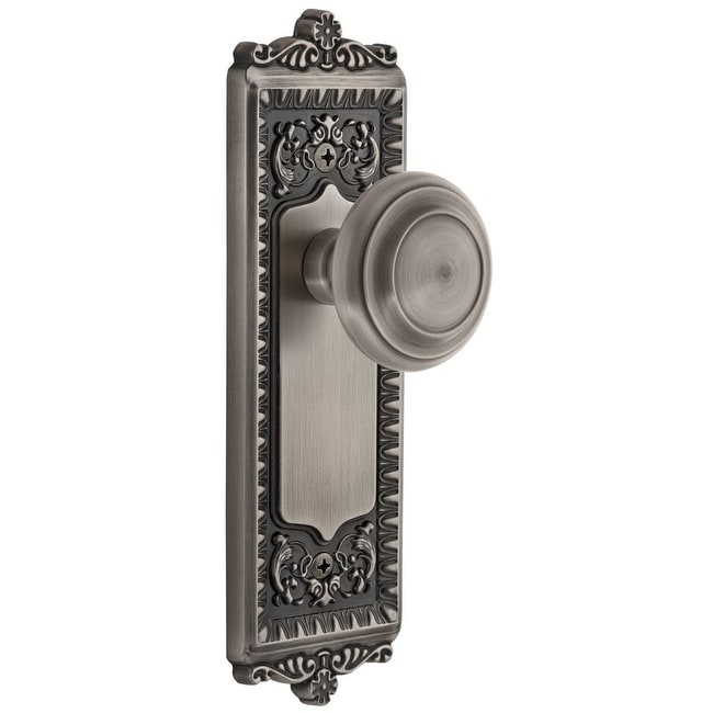 Grandeur Windsor Solid Brass Rose Privacy Door Knob Set with Parthenon
