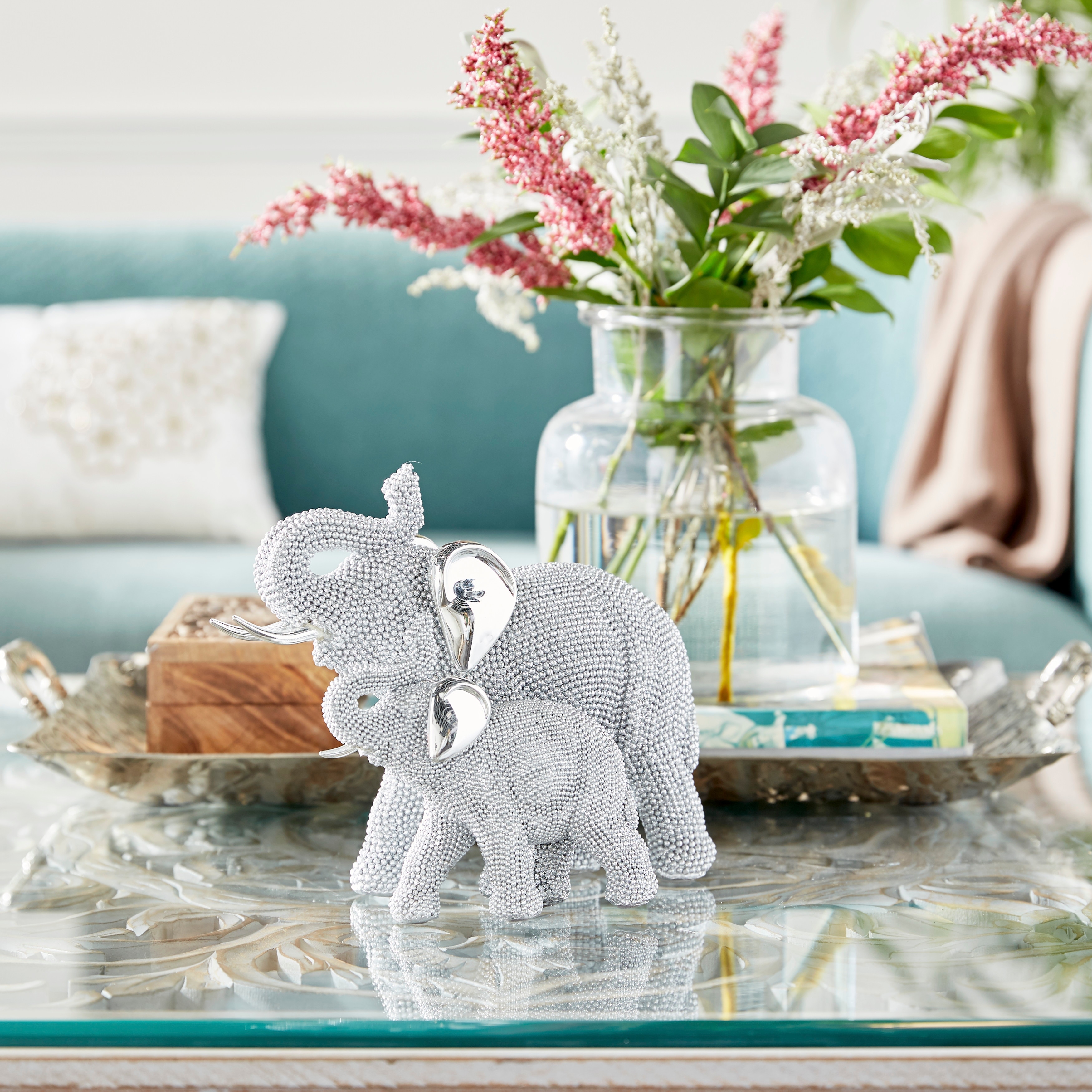 Silver Polystone Glam Sculpture Elephant 7 x 9 x 5 - 9 x 5 x 7