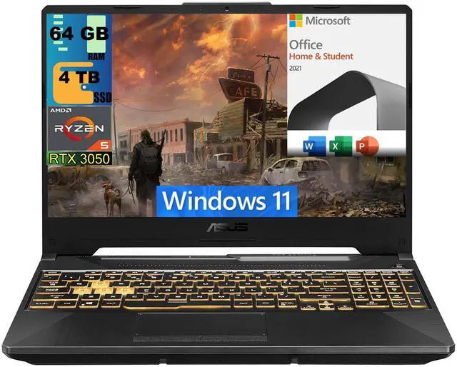 ASUS TUF Gaming A15 Gaming Laptop, 15.6" FHD 144Hz Display, AMD Ryzen 5 7535HS 6 Cores processor, RTX 3050 4GB, 64GB DDR5 4TB PCIe SSD, Backlit KB, Windows 11,Microsoft Office License