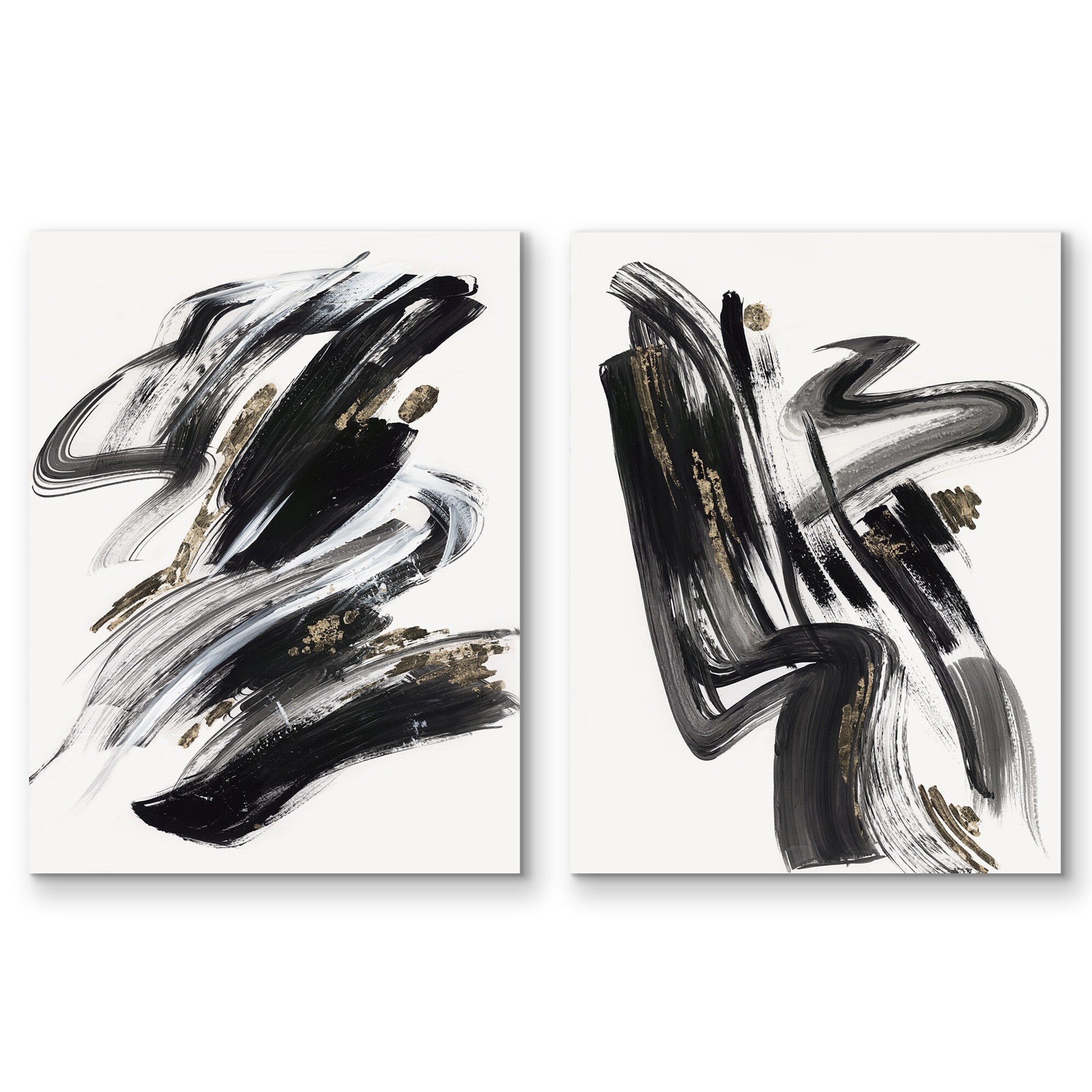 Black and White Abstract by Kasi Minami 2 Piece Canvas Wall Art Set