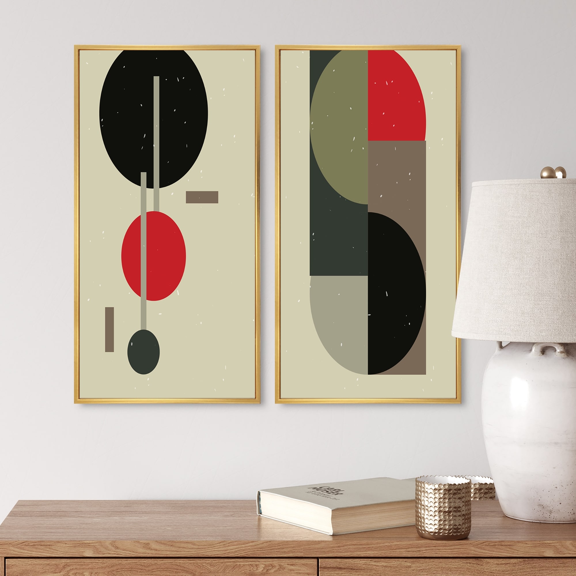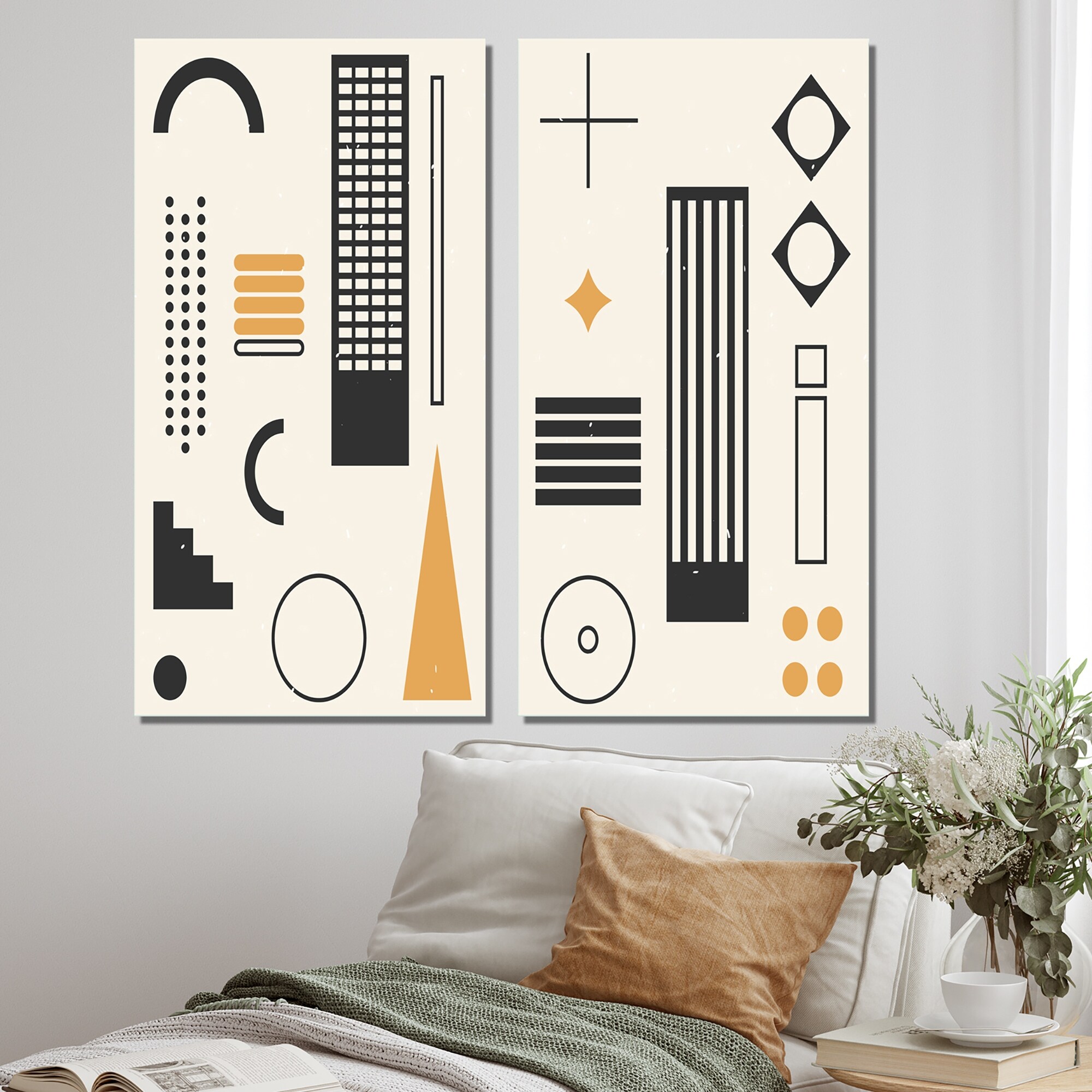 Designart "Minimal 20S Bauhaus Geometric I" Geometric Framed Art Set of 2 Pieces