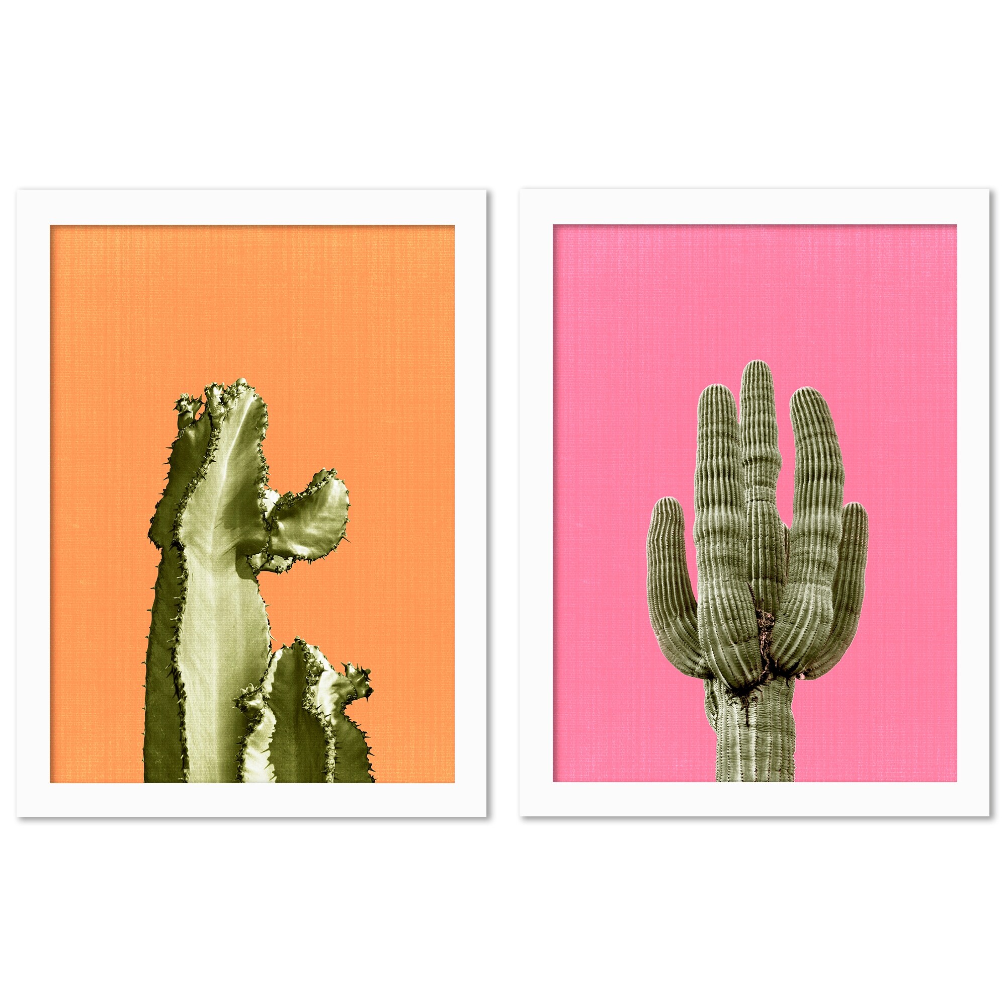 Cactus on Orange by LILA LOLA - 2 Piece White Framed Print Set