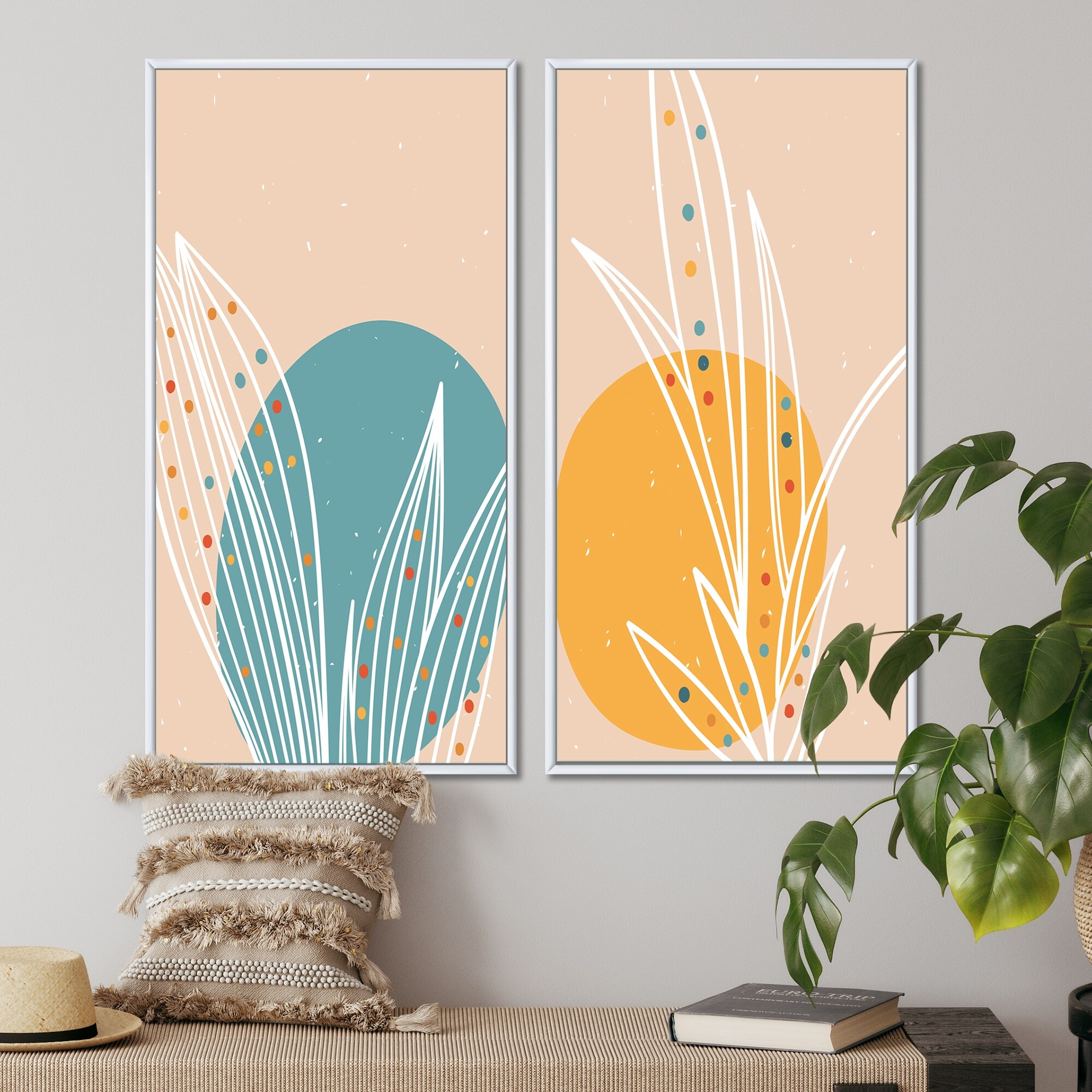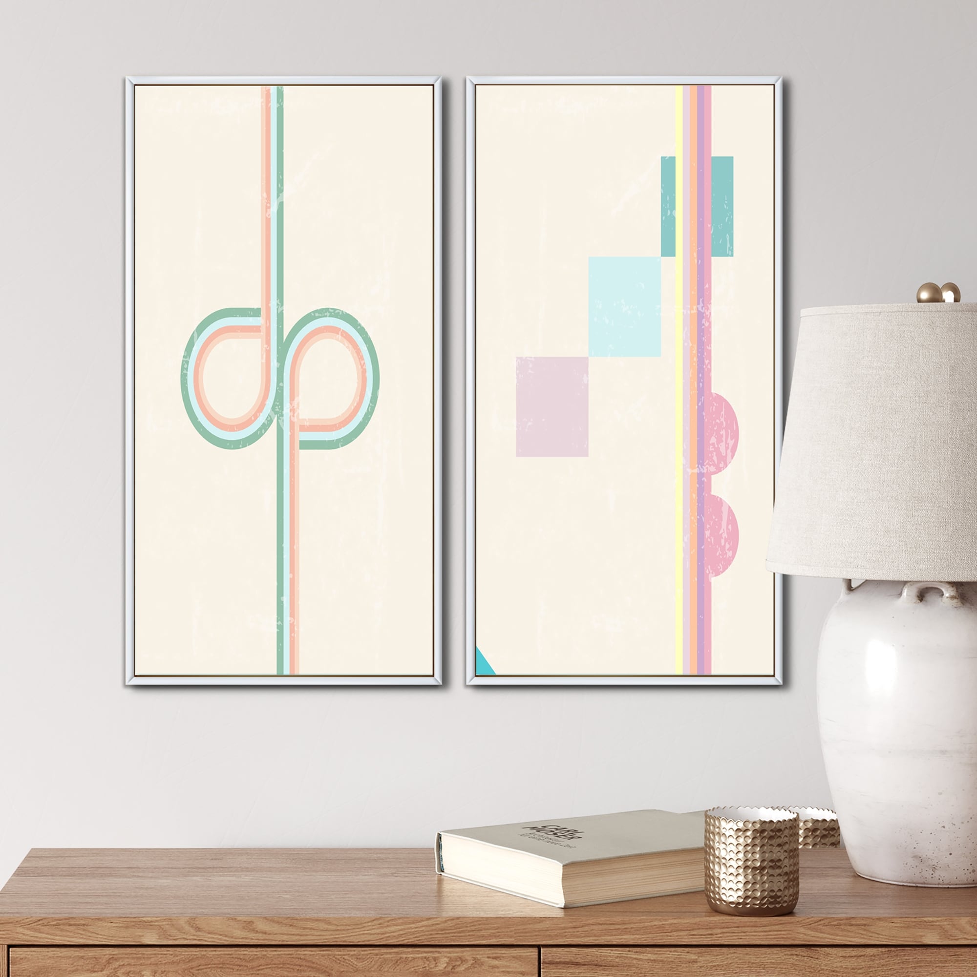 Designart "Minimalistic Creative Designs in Retro Colors V" Abstract Framed Art Set of 2 Pieces