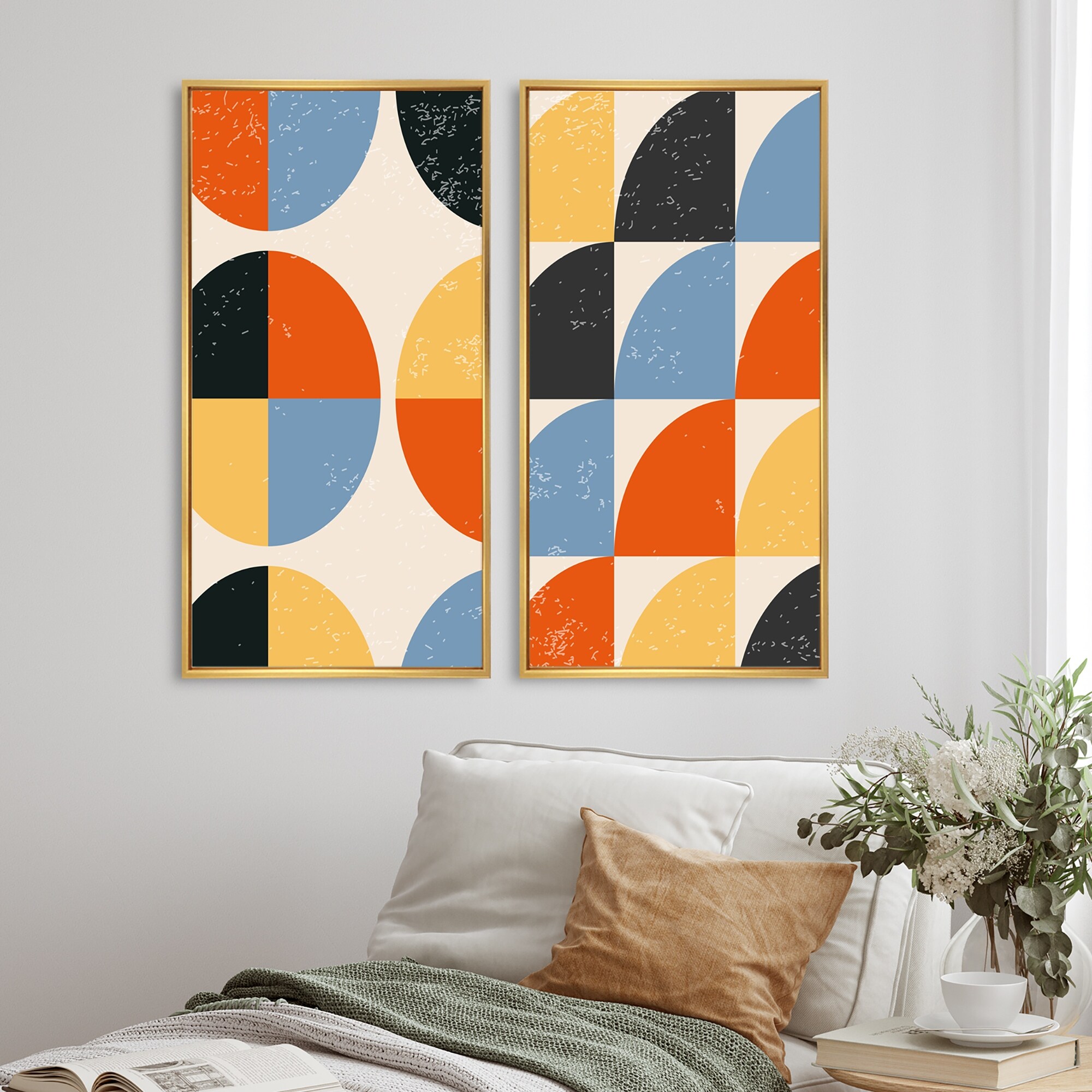 Designart "Retro Abstract Colorful Geometric Designs X" Geometric Framed Art Set of 2 Pieces
