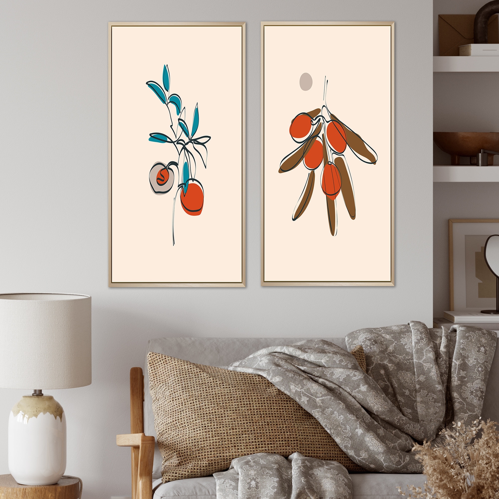 Modern Abstract Botanical Hexagon 2 Piece Wrapped Canvas Art Set