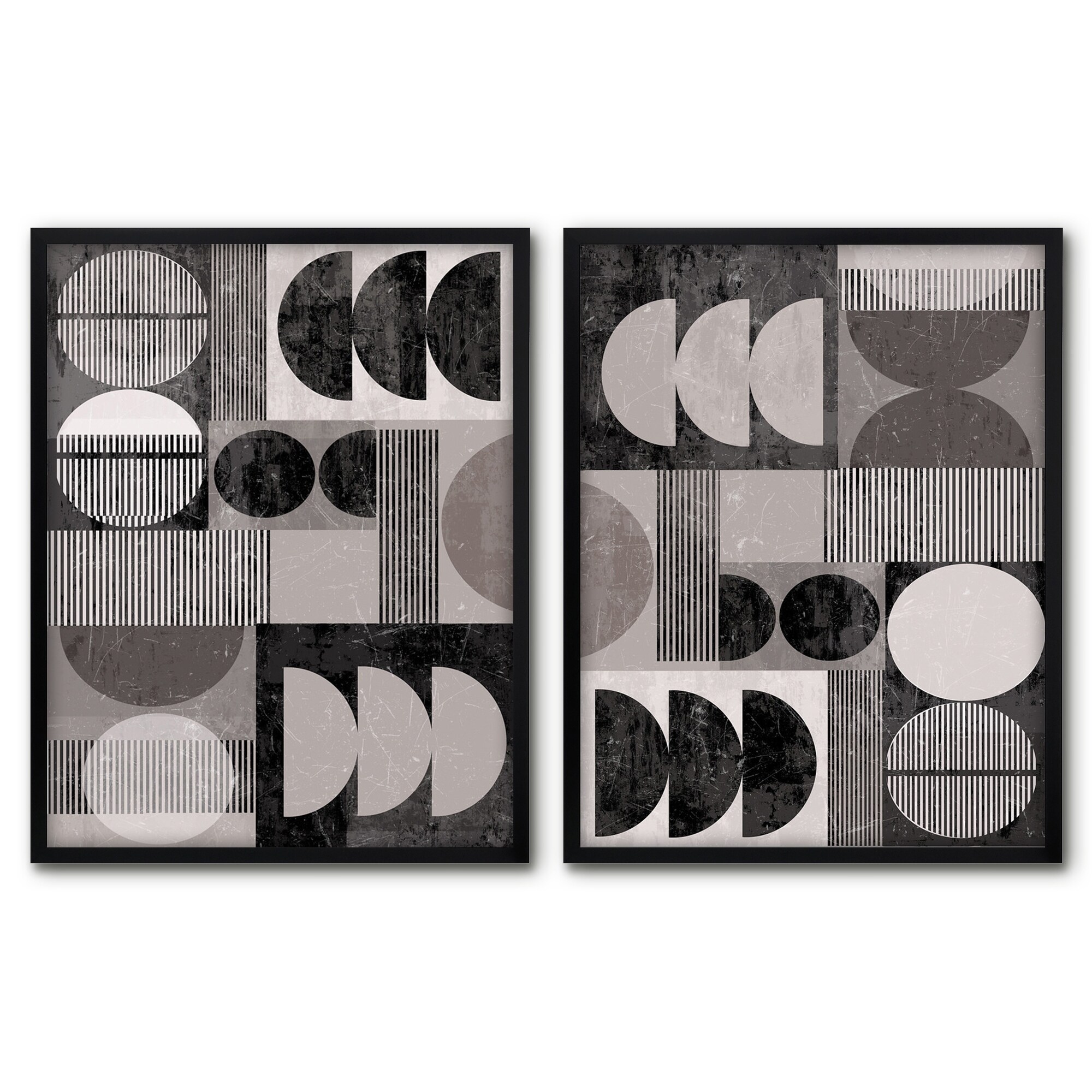 Abstract Geometric Composition by Pop Monica - 2 Piece Black Framed Print Set
