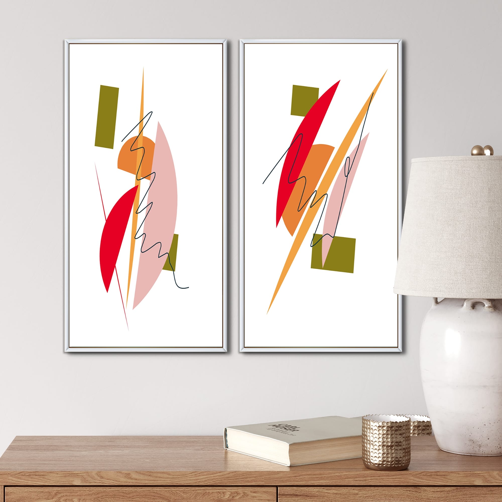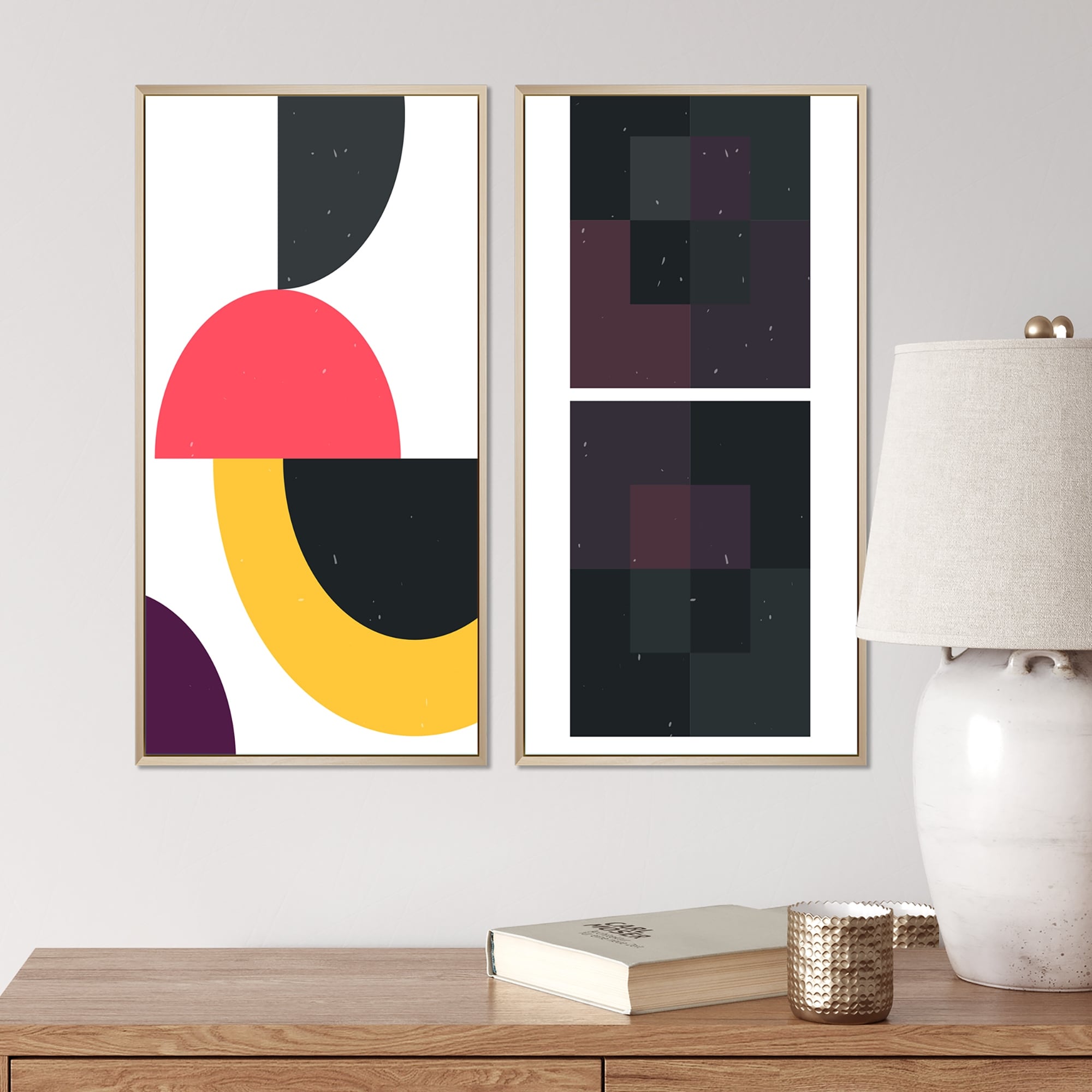 Designart "Minimal Abstract Shapes in Retro Colors VI" Geometric Framed Art Set of 2 Pieces