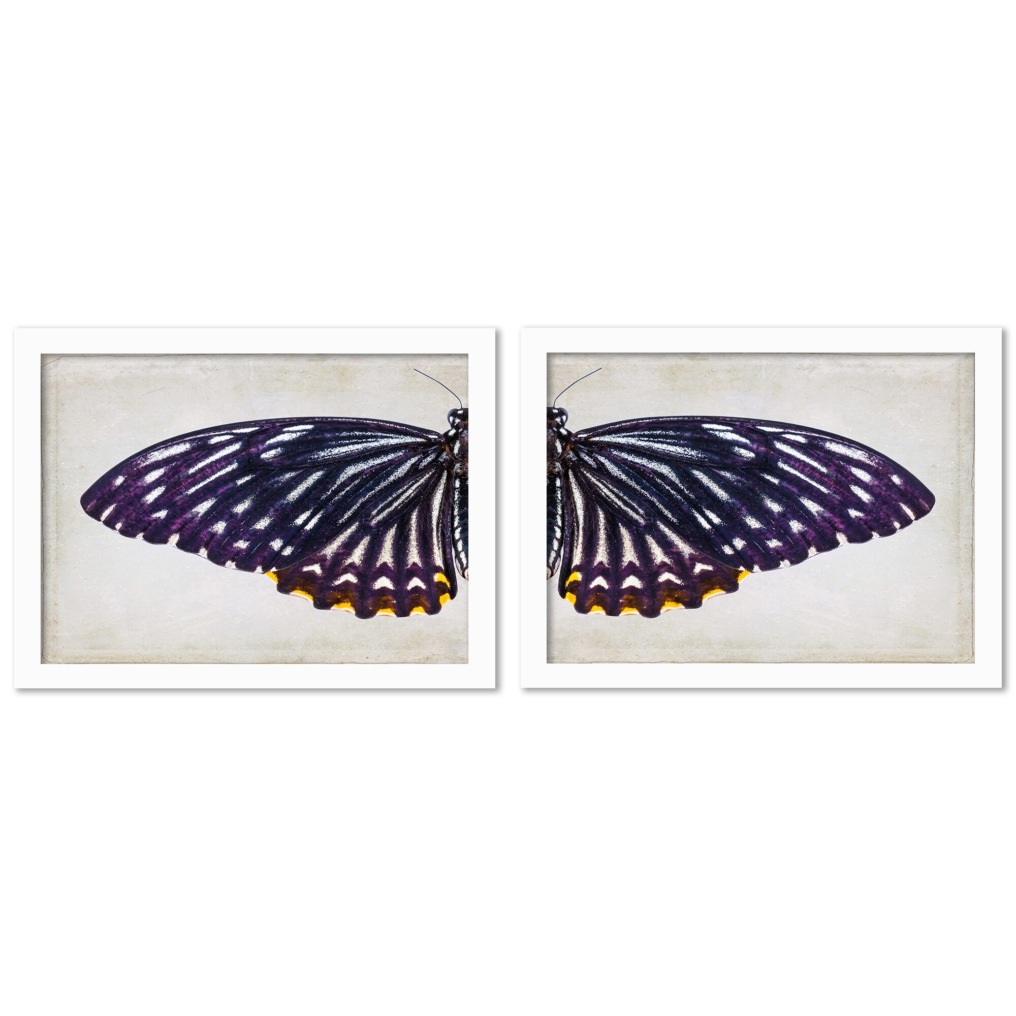 Purple Butterfly 2 Piece White Framed Print Wall Art Set