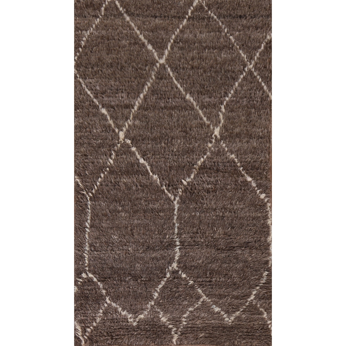 Brown Trellis Geometric Moroccan Oriental Rug Hand-knotted Wool Carpet - 2'3" x 4'2"