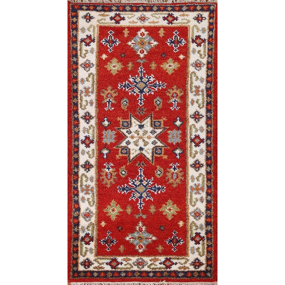 Geometric Super Kazak Oriental Area Rug Handmade Foyer Carpet - 2'3" x 3'0"