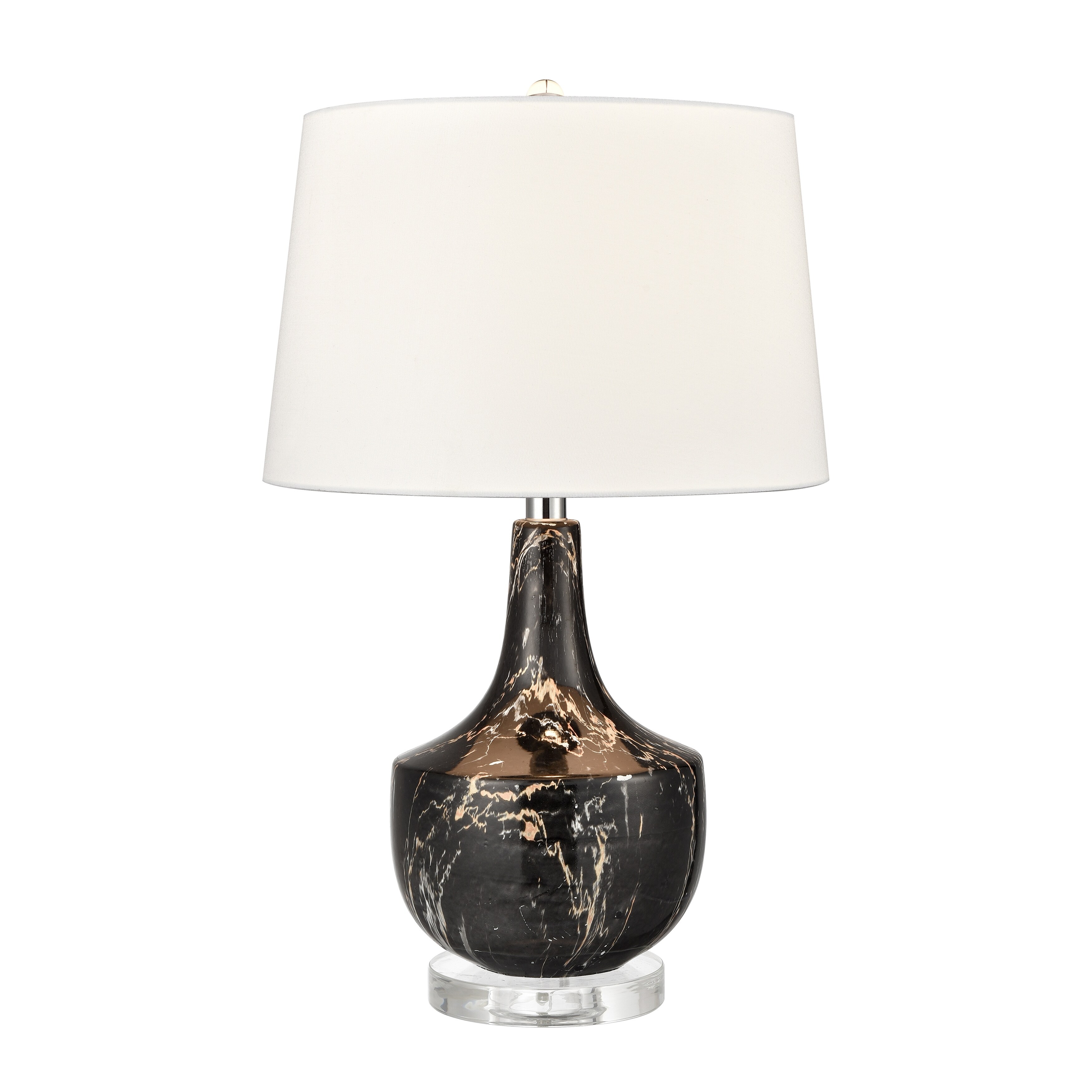 Metal, marble, 23"h Accent Table, Black 23.0"H - 18.0" x 18.0" x 23.0"