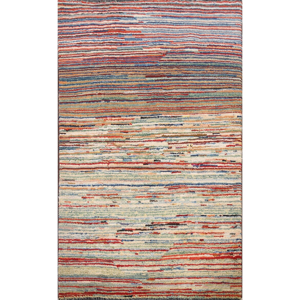 Striped Contemporary Gabbeh Kashkoli Area Rug Hand-knotted Wool Carpet - 2'3" x 3'5"