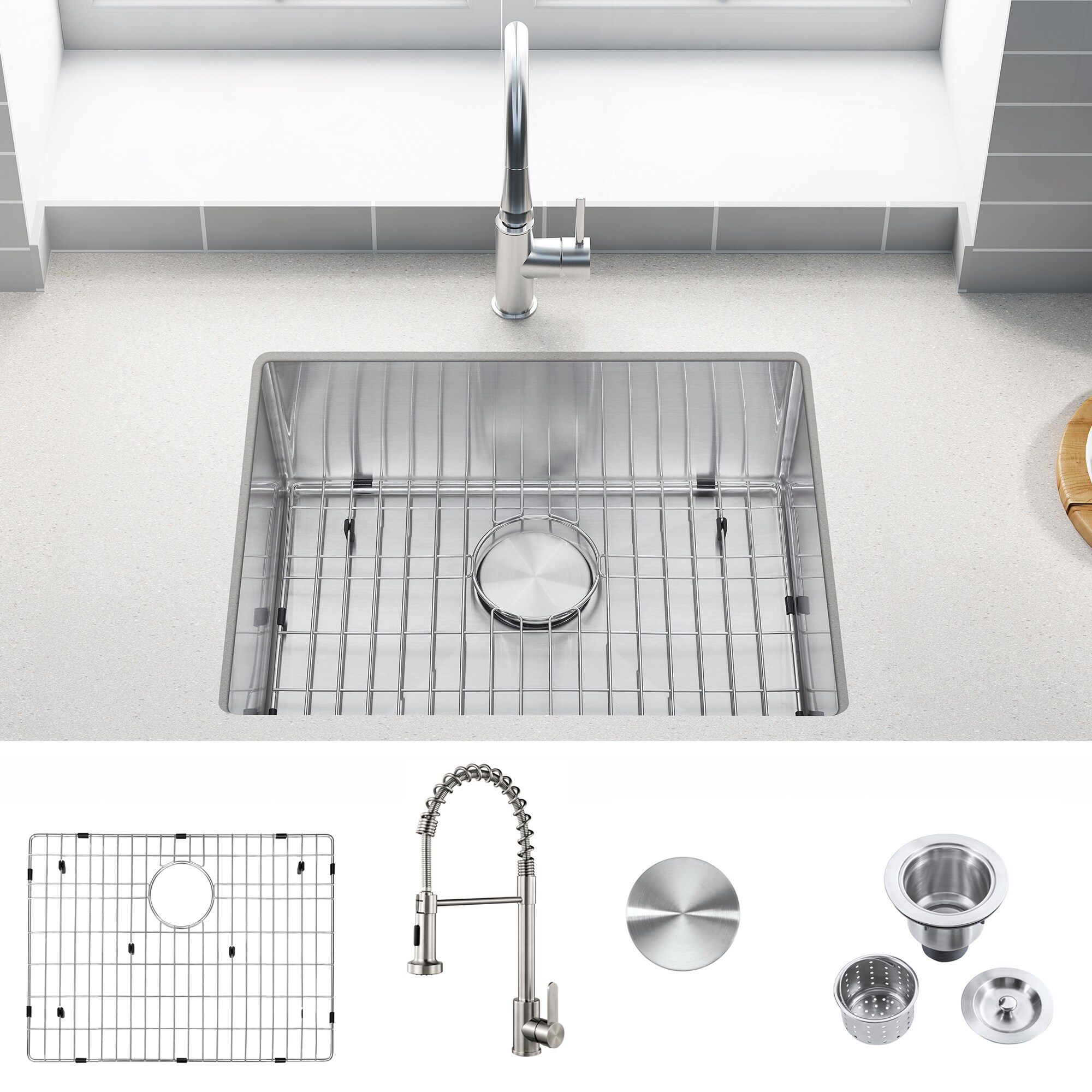 23 in Undermount Single Bowl Kitchen Sink with Faucet
