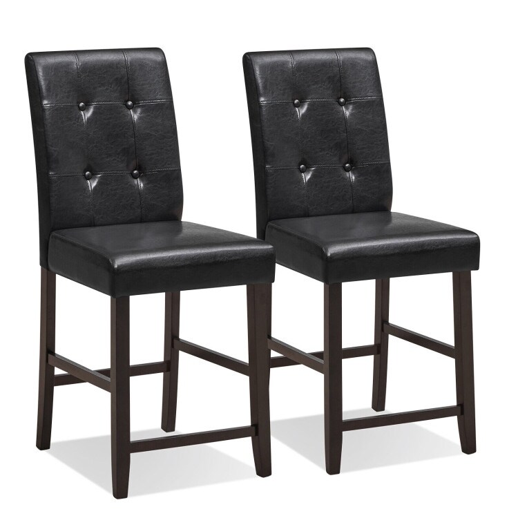 Set of 2 Bar Stools with Rubber Wood Legs and Button-Tufted Back - 23" x 18.5" x 42" (L x W x H)