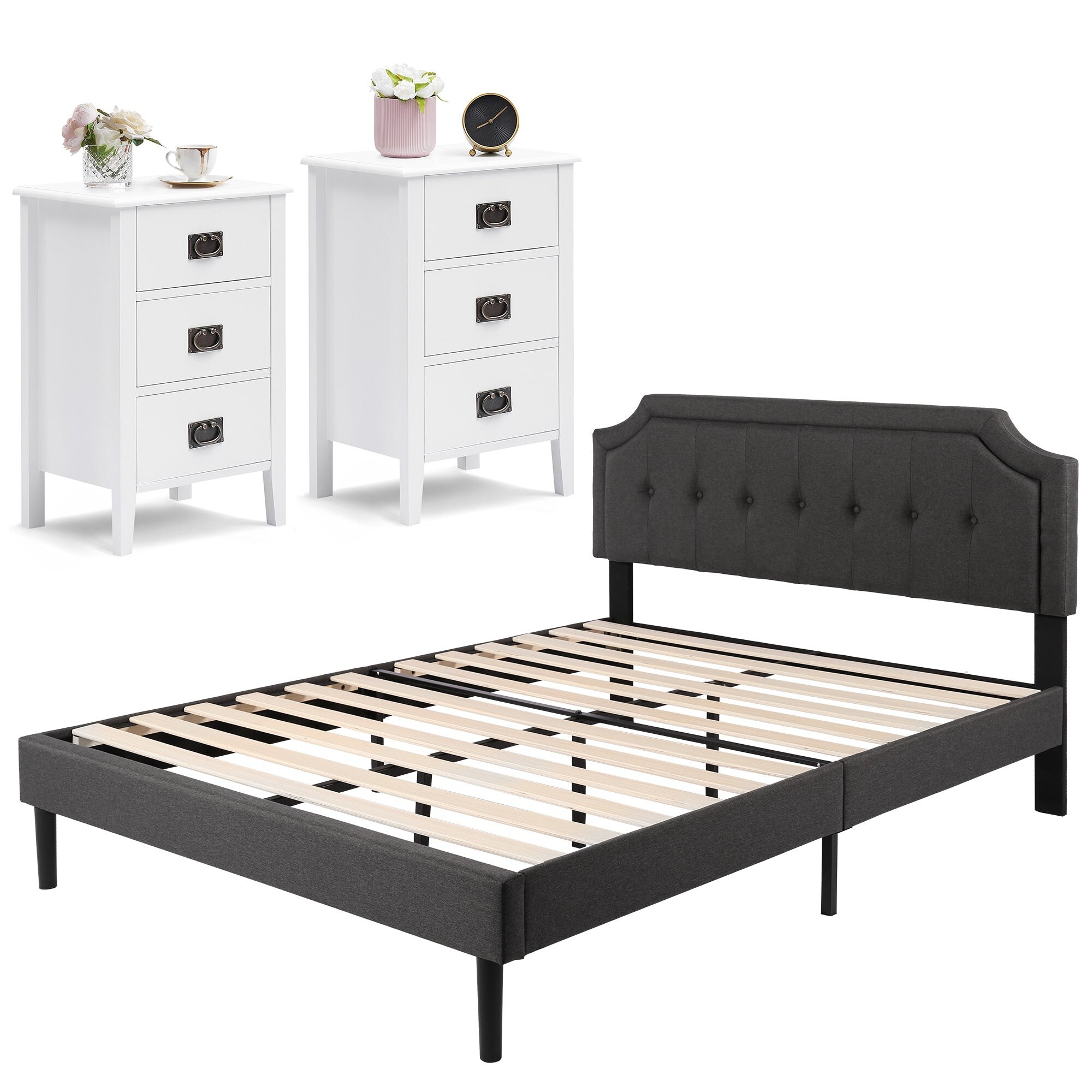 Taomika 3-pieces Bed Frame with Wood Headboard and 3-Drawer Nightstands Set