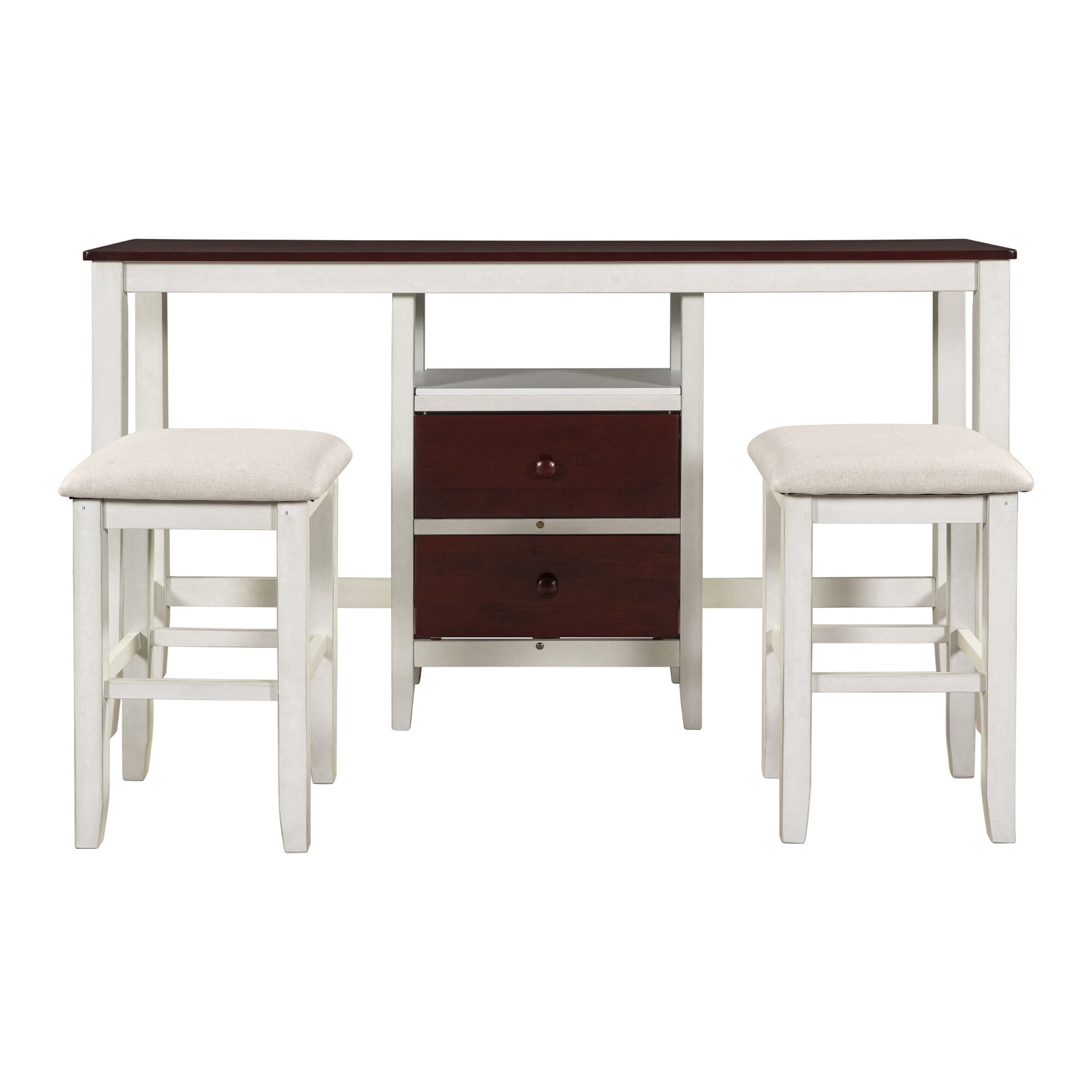 Farmhouse Rustic 3-piece Counter Height Wood Dining Table Set with 2 Storage Drawers and 2 Stools for Small Places