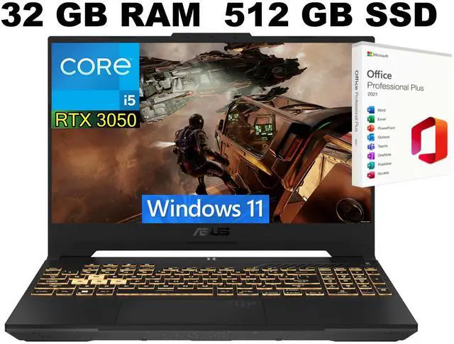 ASUS TUF F15 Gaming Laptop, 15.6" FHD 144Hz Display, Intel Core i5-12500H 12-Core Processor, GeForce RTX 3050 6 GB GDDR6, 32GB DDR4 512GB PCIe SSD, Wi-Fi 6, Windows 11 ,Office 2021 License