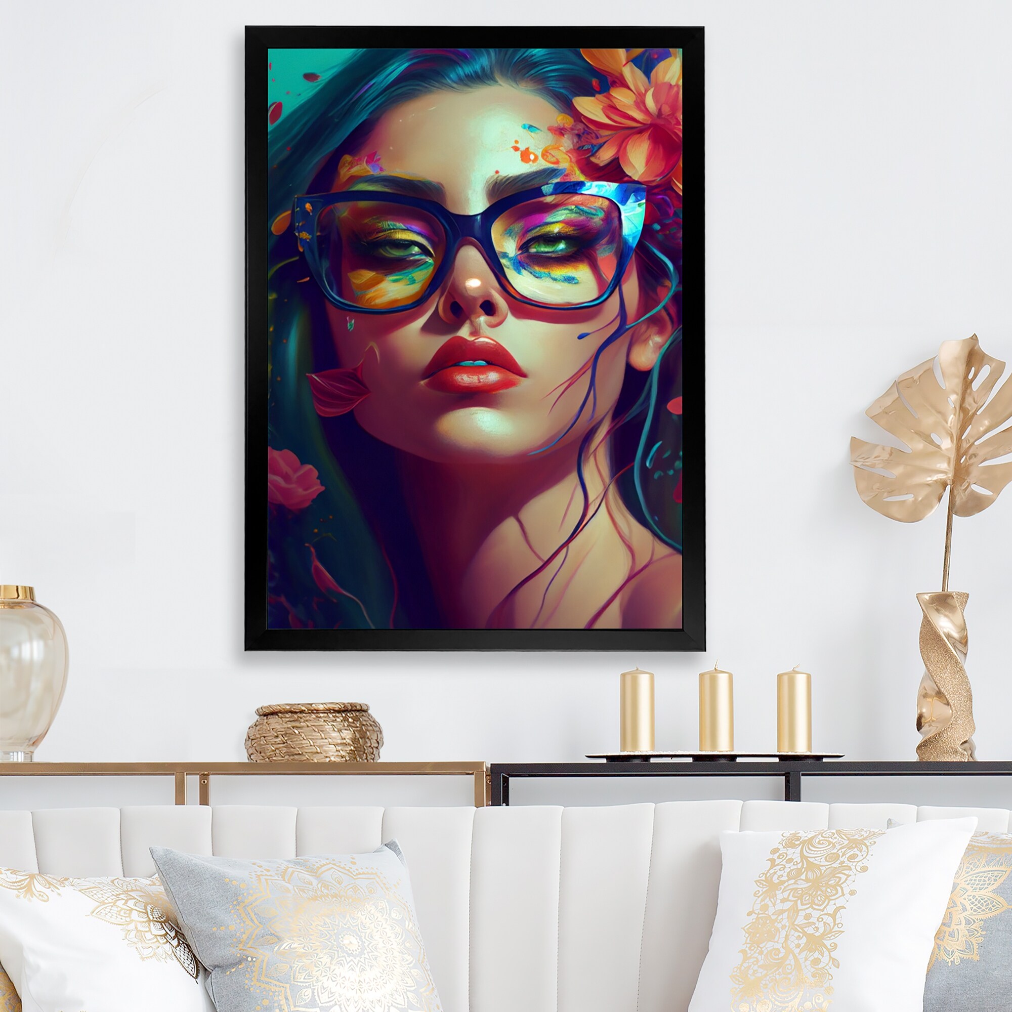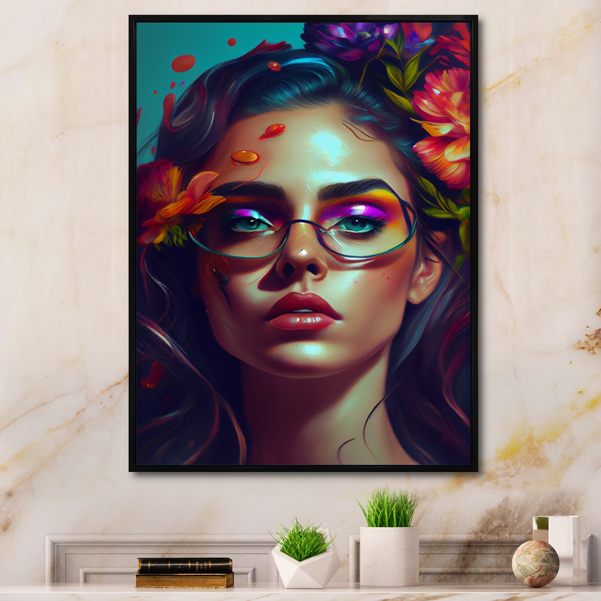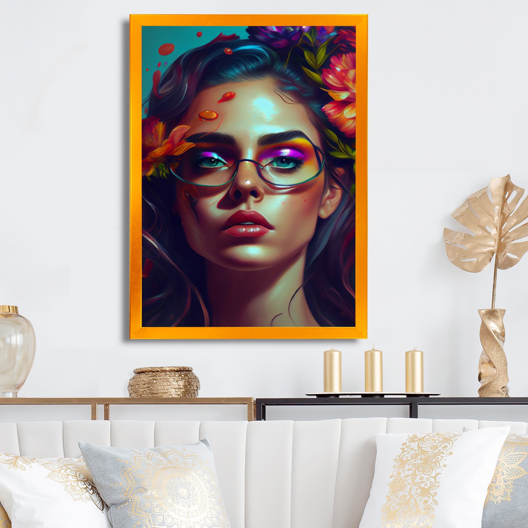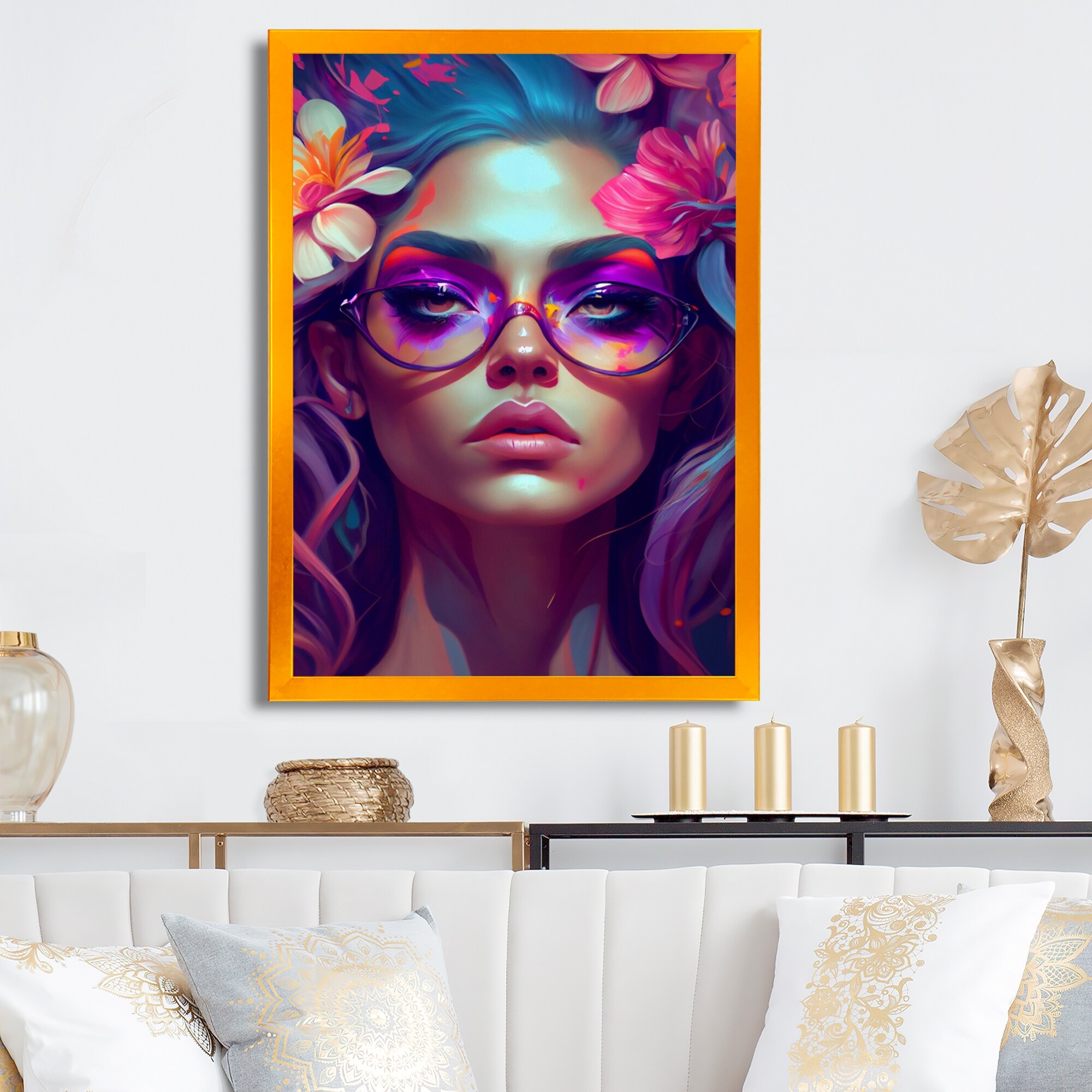 Designart "Attractive Woman With Blue Hair II" Contemporary Glam Framed Canvas Art Print
