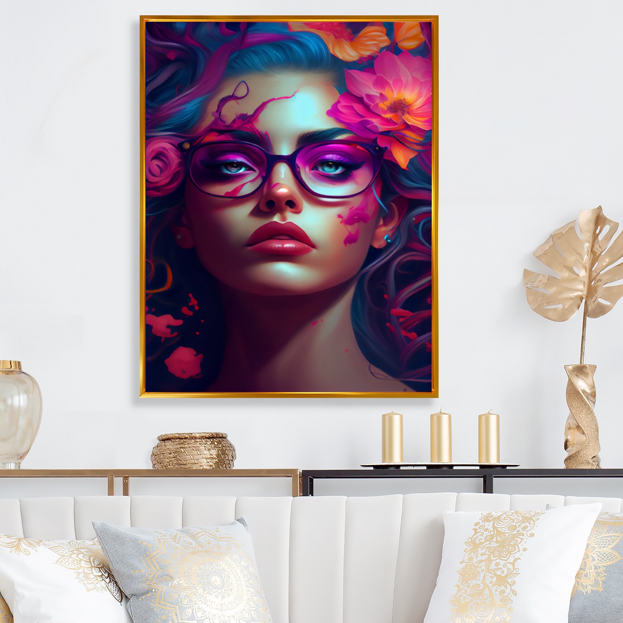 Designart "Delicate Portrait of a Fashion Woman With Pink Hair" Glam Framed Wall Decor