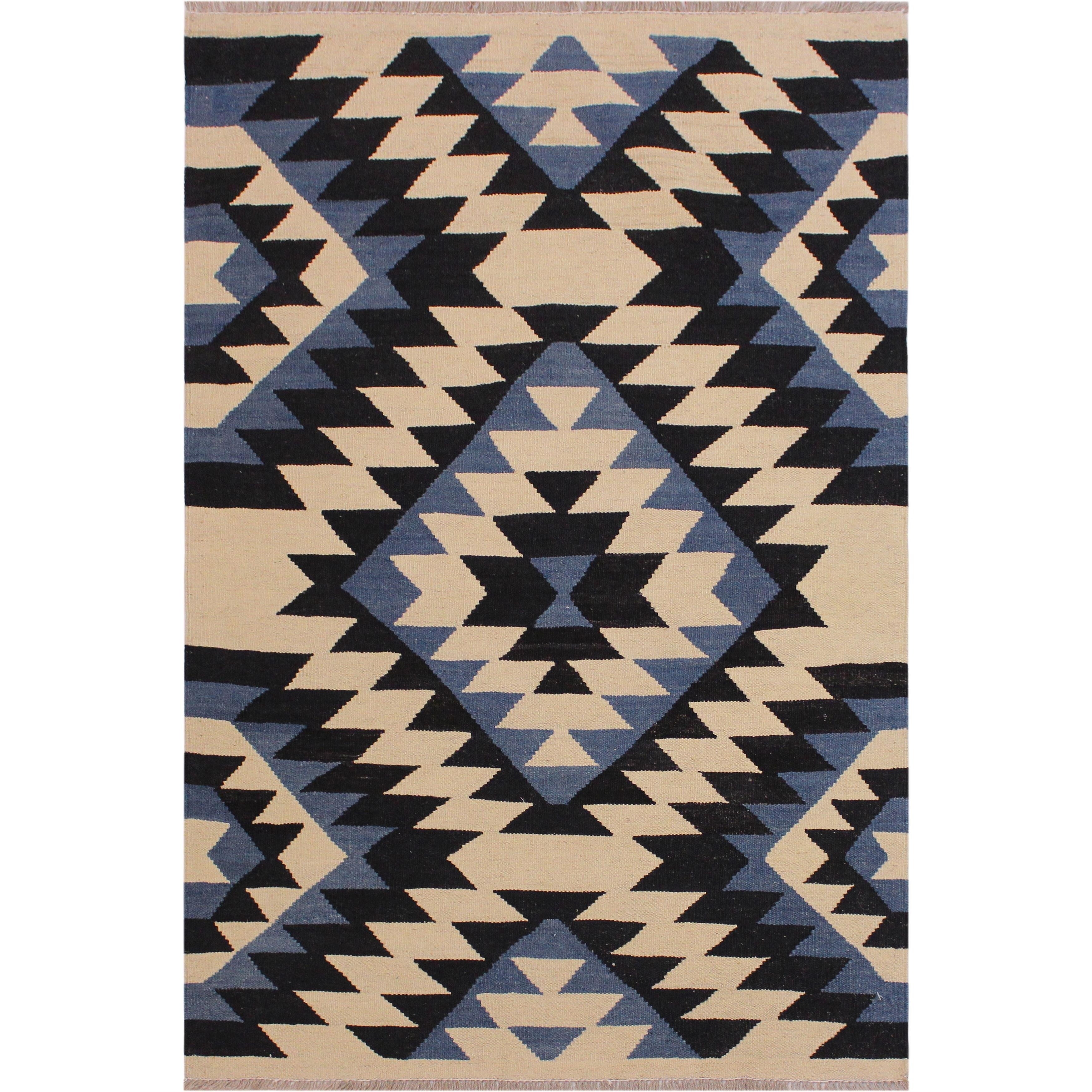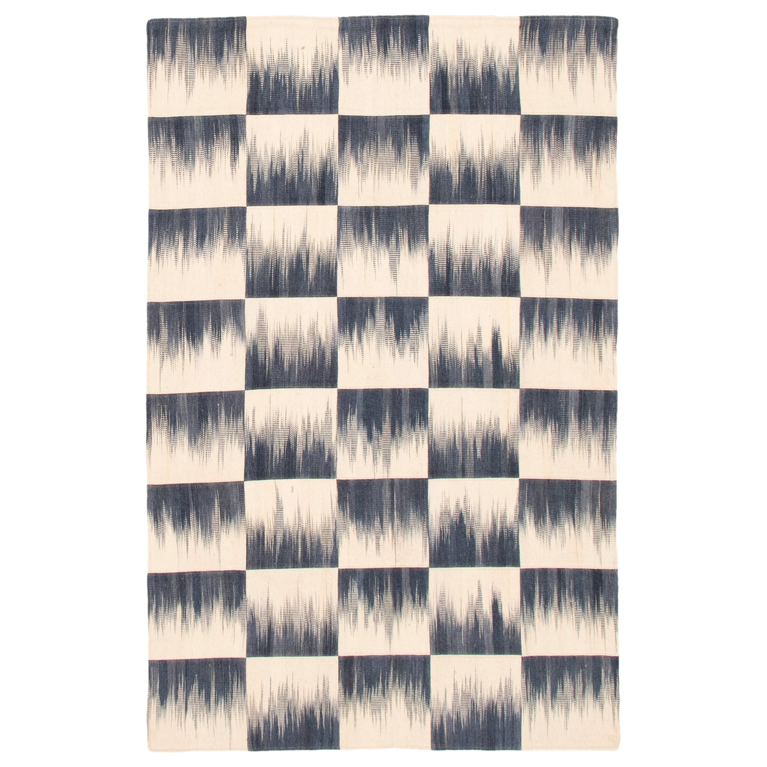 Kilim Shorter Ivory/Black Hand-Woven Wool Rug -3'2 x 5'1 - 3'2" x 5'1"