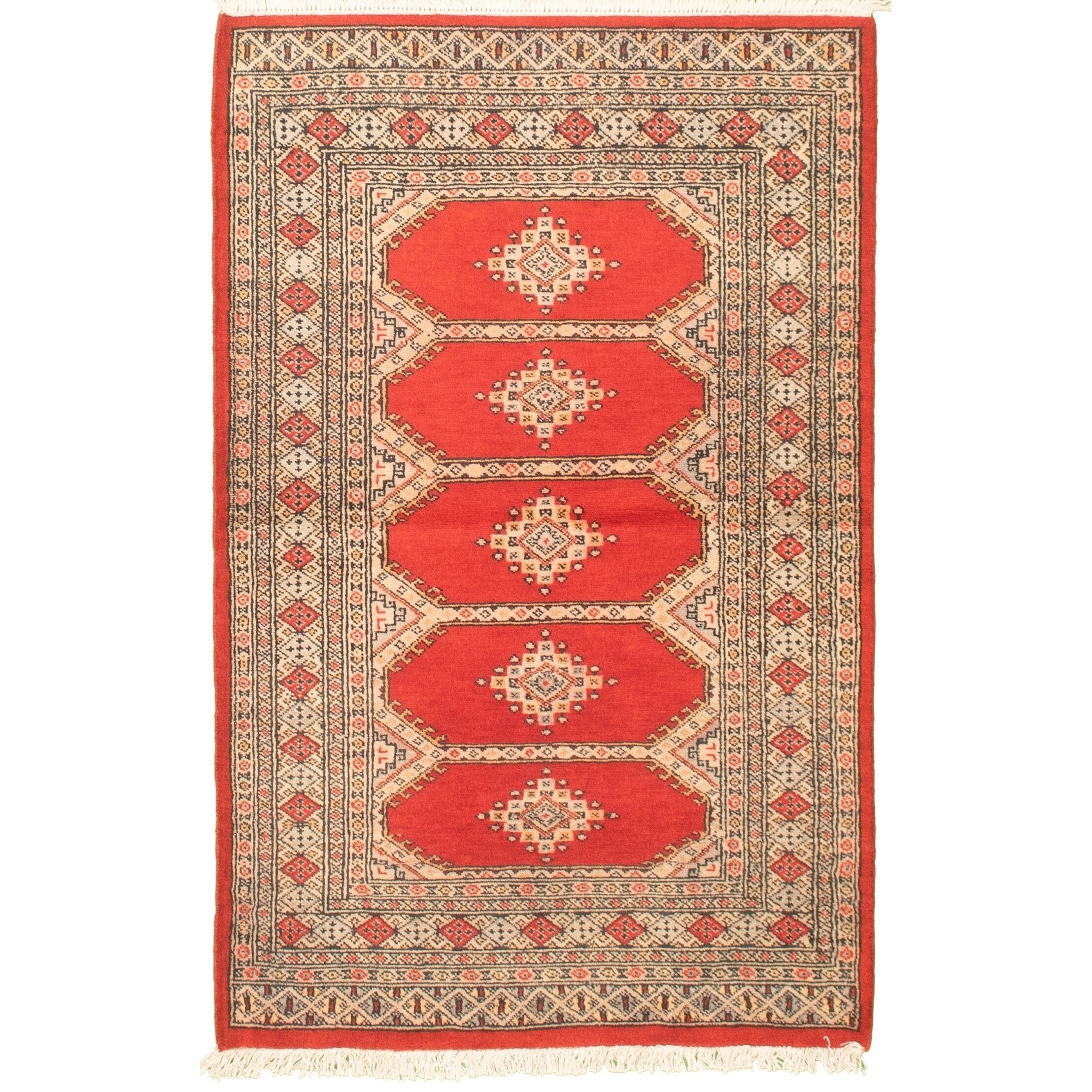 Hand-knotted Finest Peshawar Bokhara Red Wool Rug - 3'2" x 5'1"