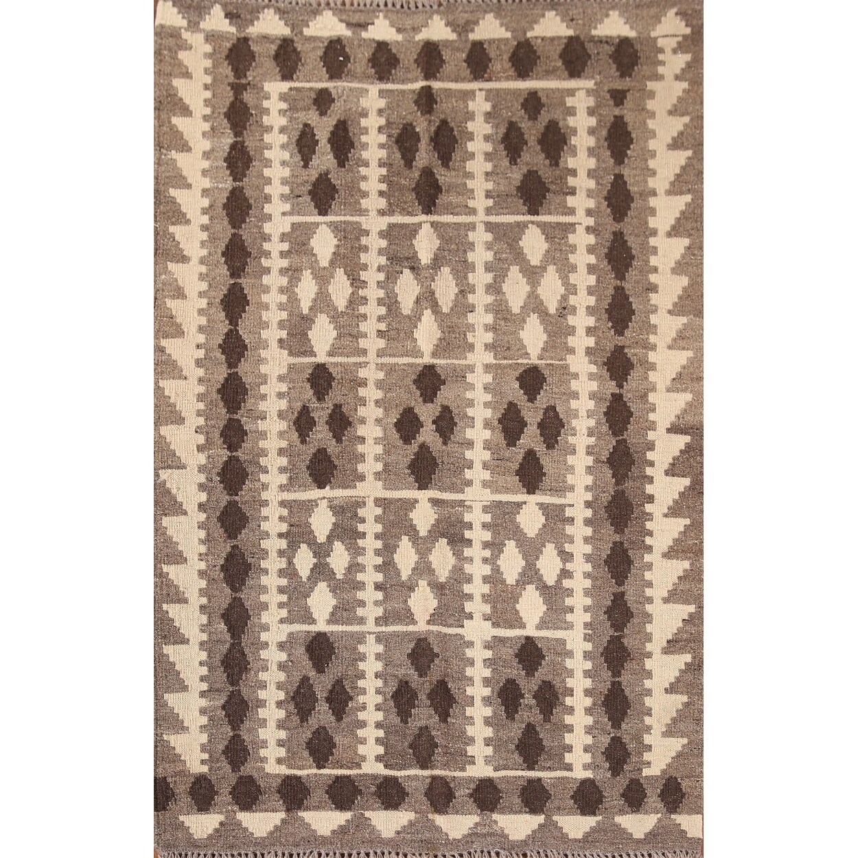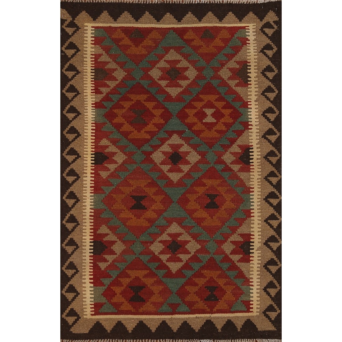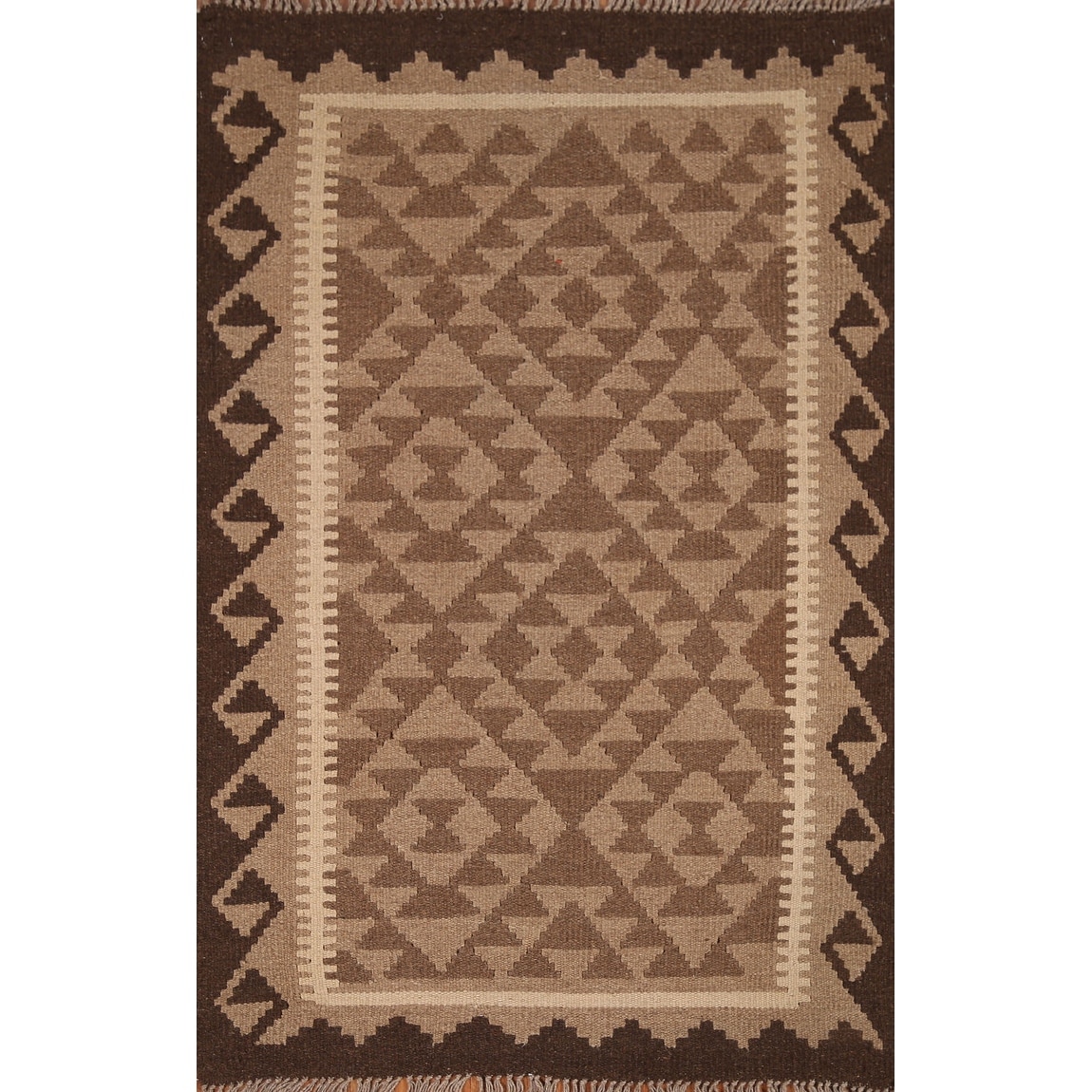 Reversible Kilim Oriental Rug Hand-woven Brown Geometric Wool Carpet - 3'3" x 5'1"