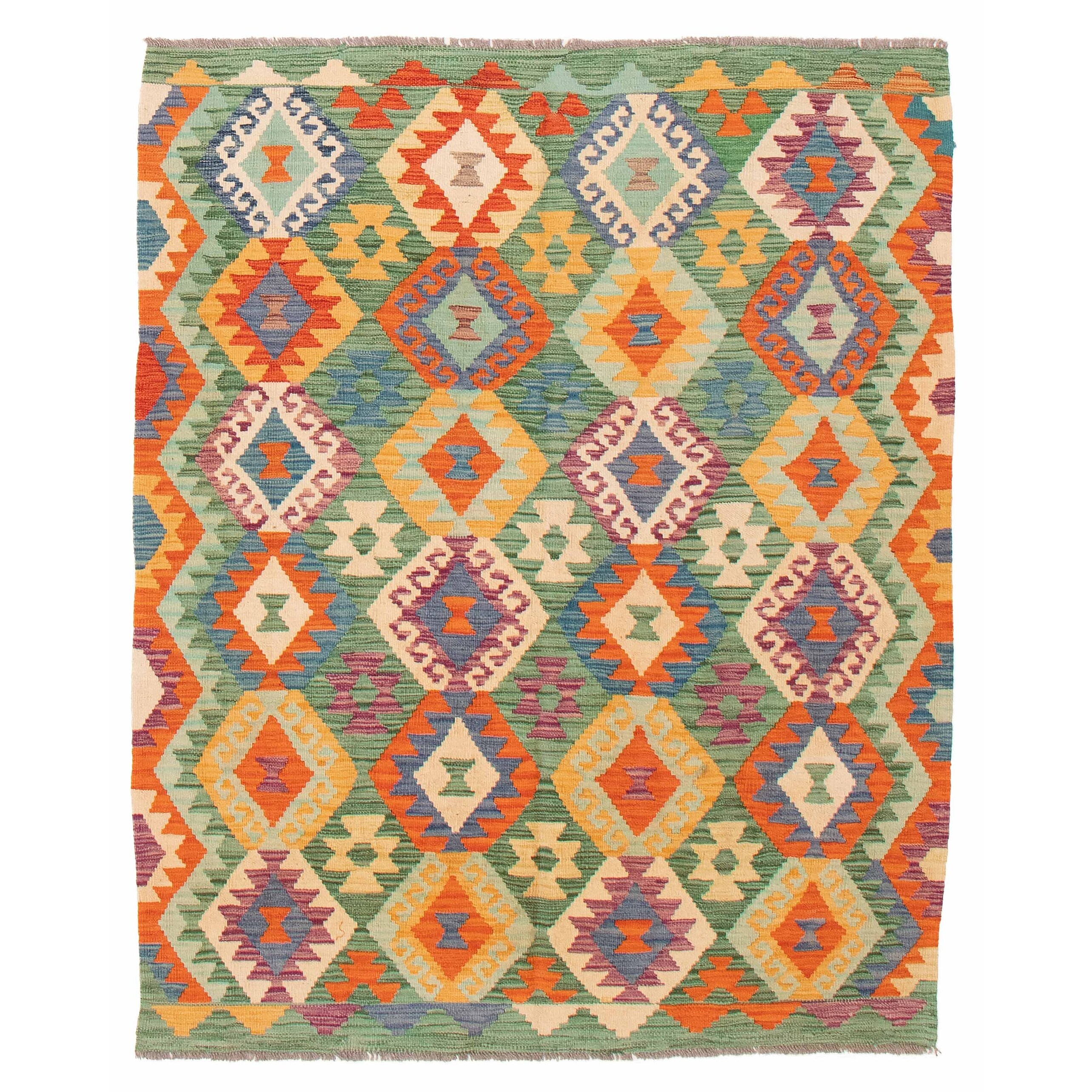 ECARPETGALLERY Flat-Weave Bold and Colorful Green Wool Kilim - 5'1 x 6'4