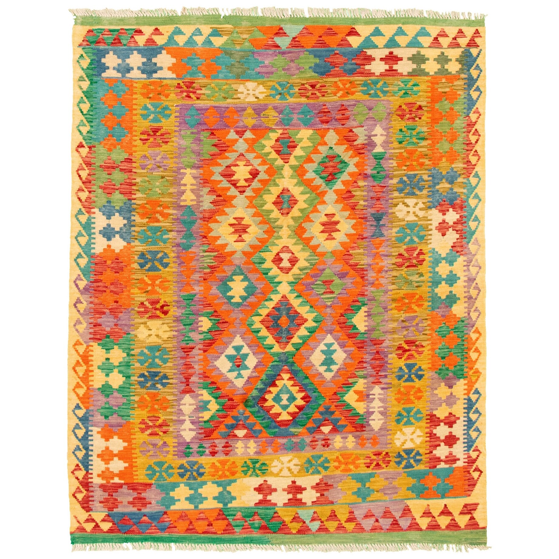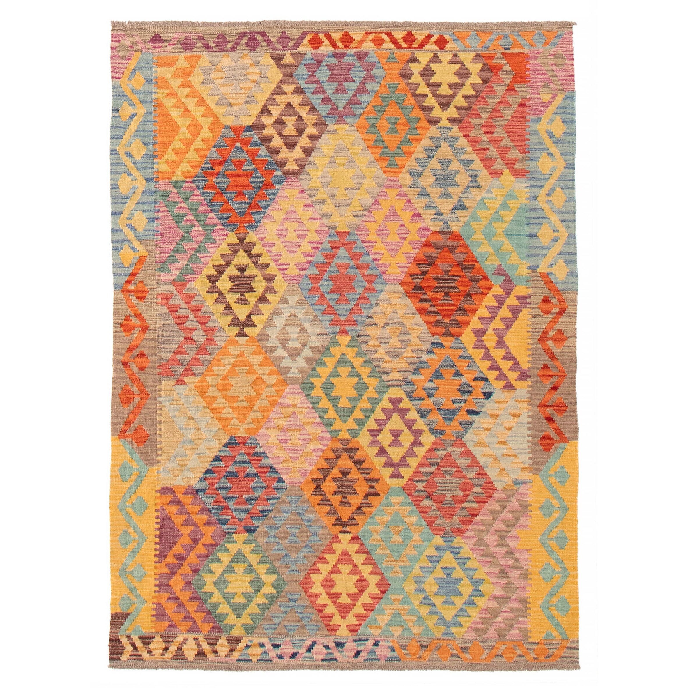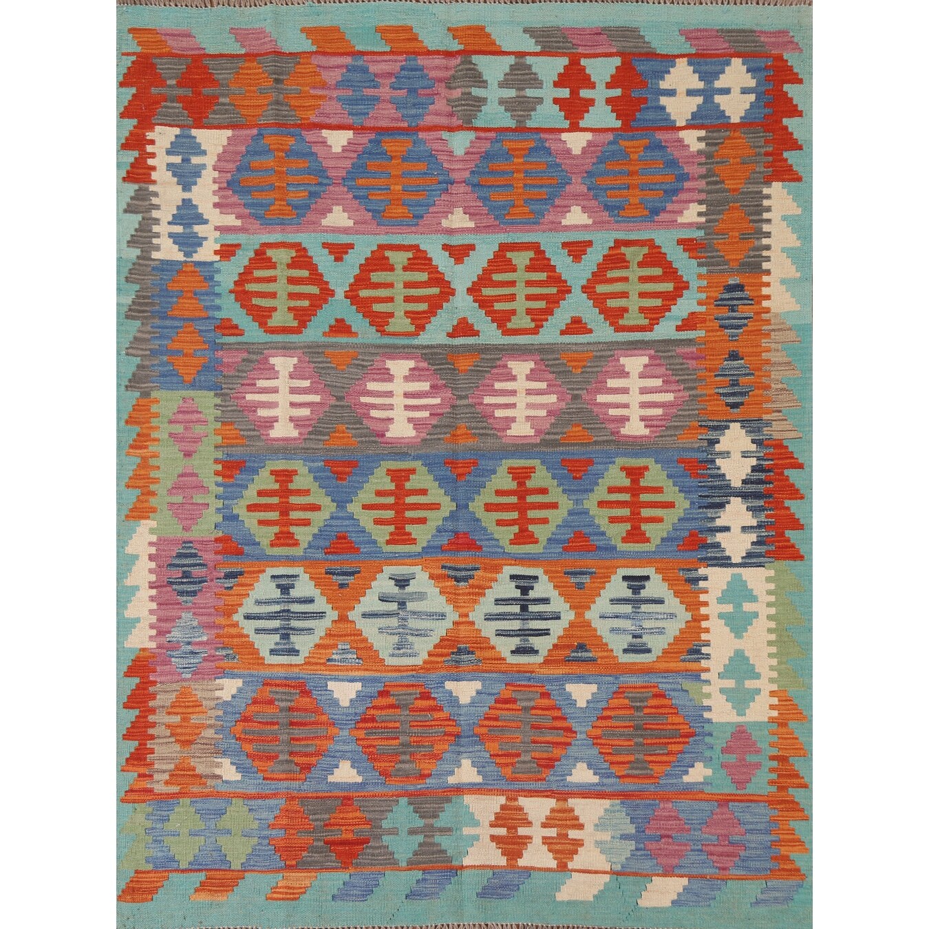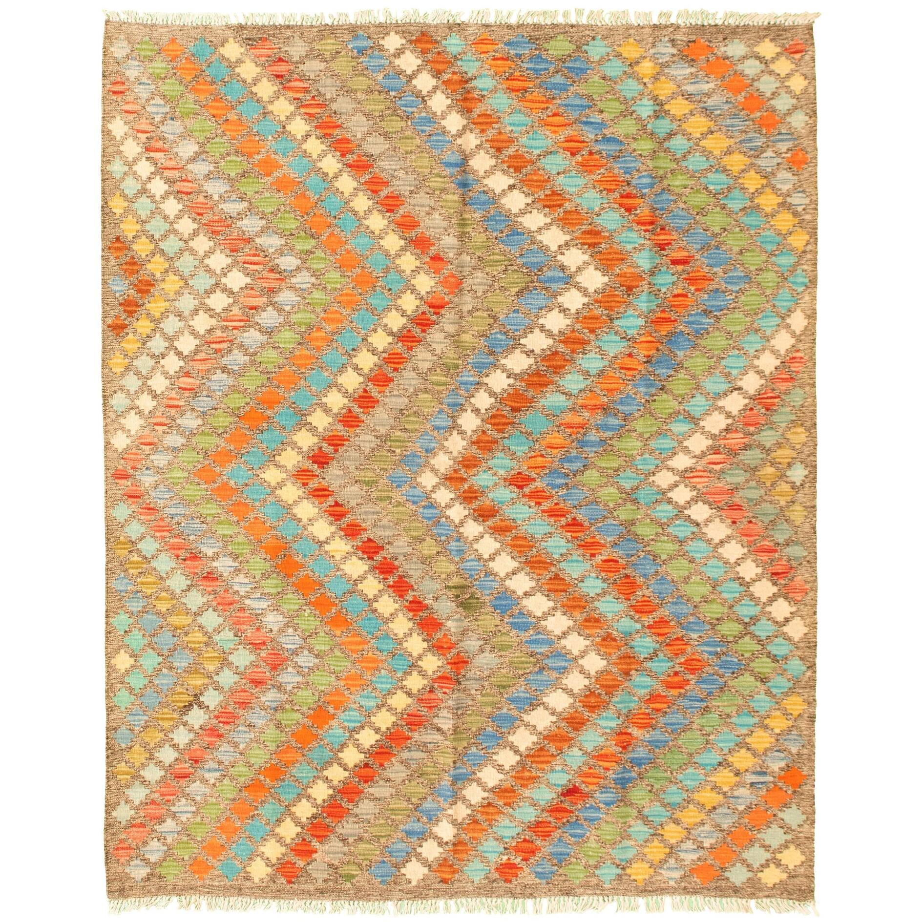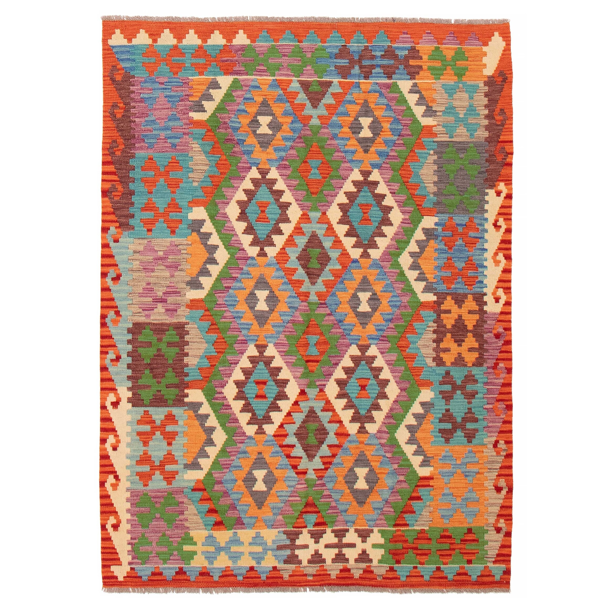 ECARPETGALLERY Flat-weave Bold and Colorful Multi Color Wool Kilim - 5'1 x 6'6