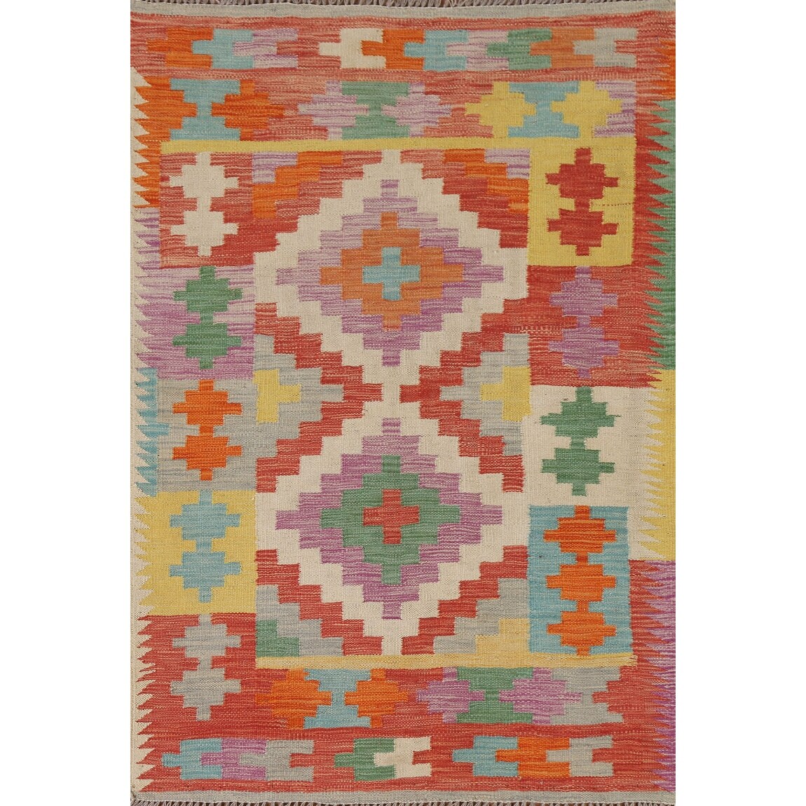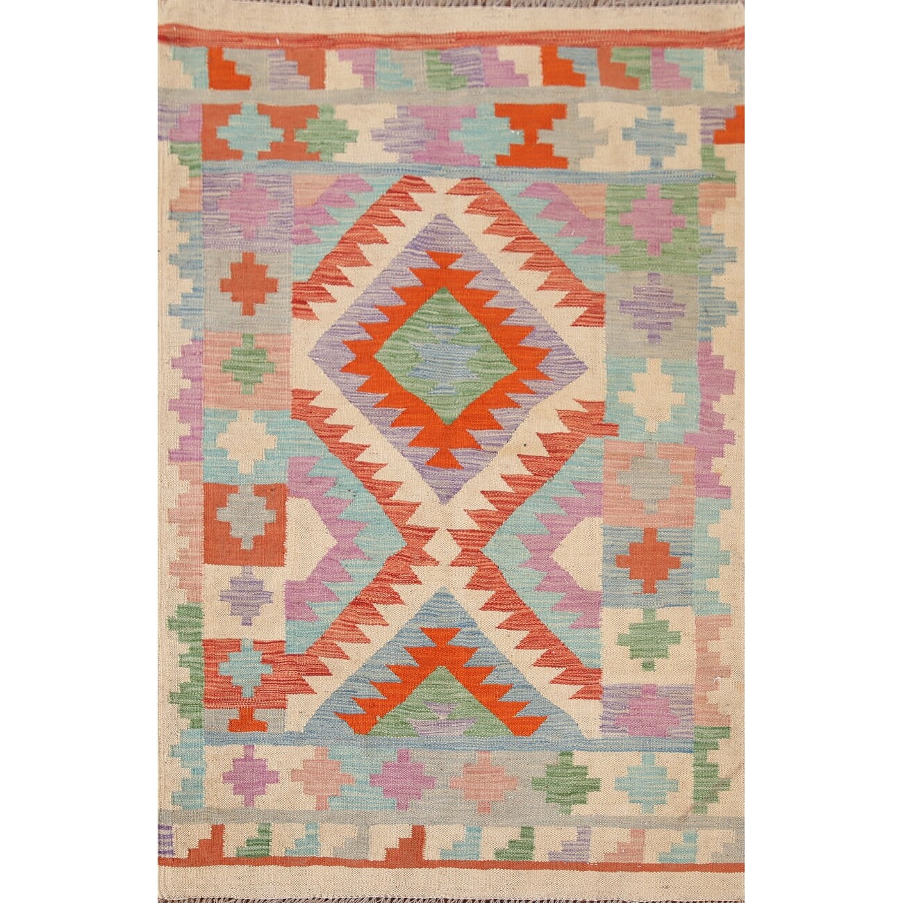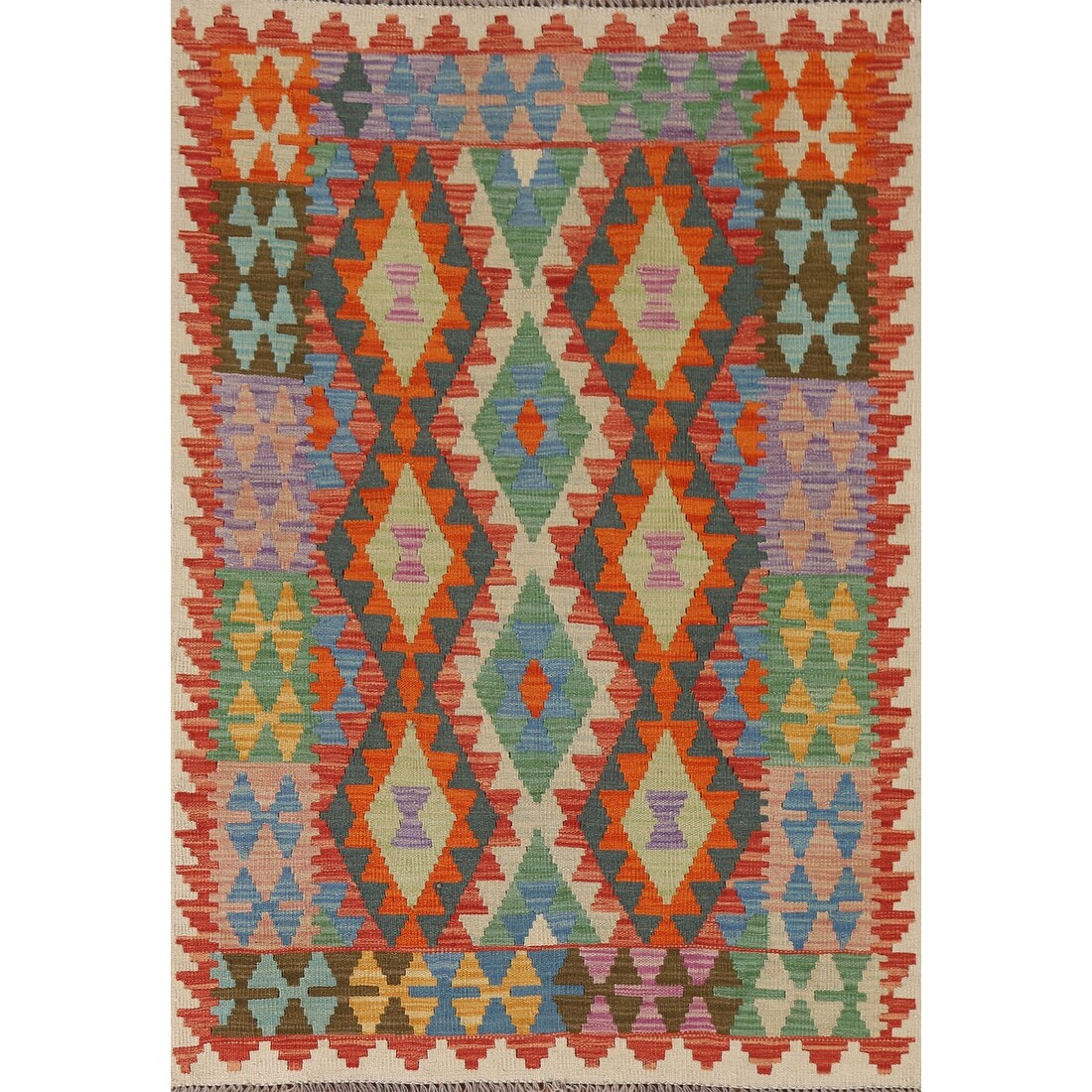 Geometric Kilim Oriental Area Rug Hand-woven Wool Carpet - 3'2" x 5'1"