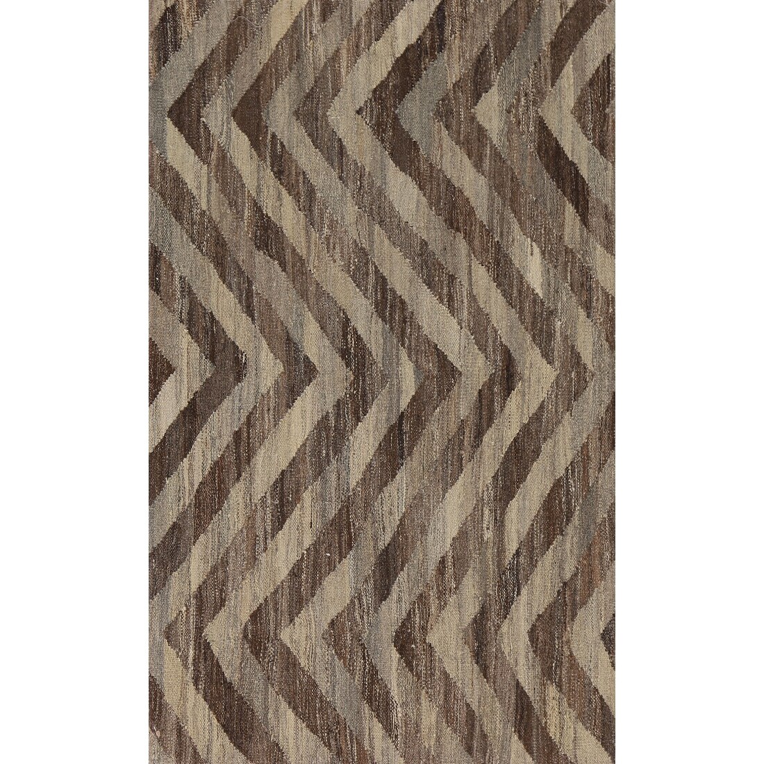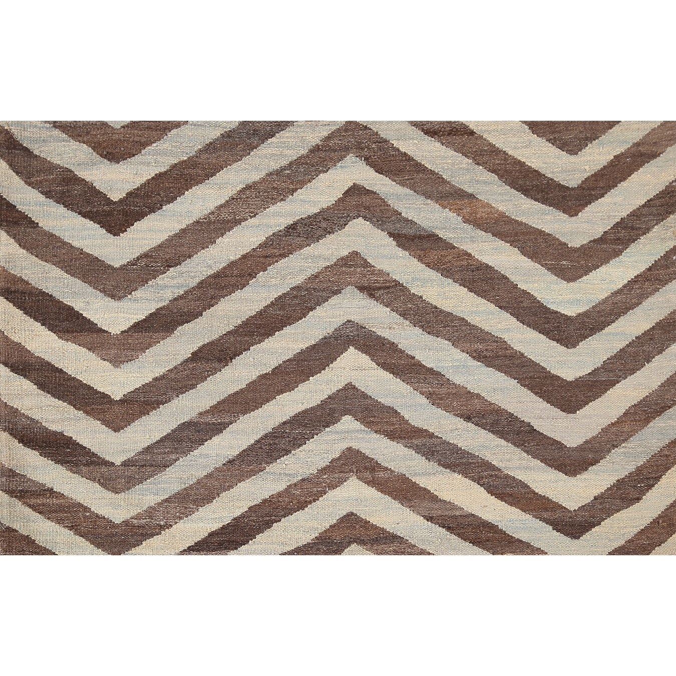 Brown Chevron Style Kilim Oriental Foyer Rug Hand-Woven Wool Carpet - 3'0" x 5'1"