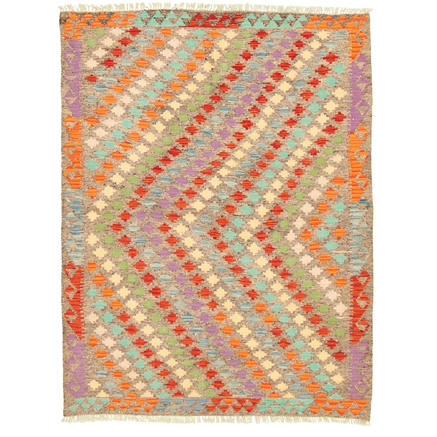 ECARPETGALLERY Flat-weave Bold and Colorful Grey Wool Kilim - 5'1 x 6'7