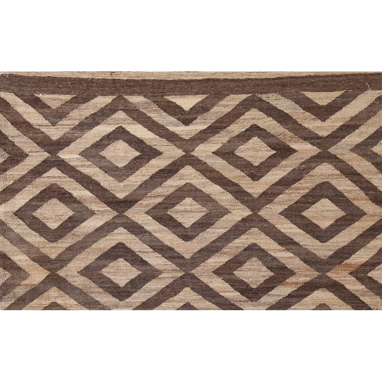 Brown Geometric Kilim Oriental Rug Flatweave Wool Carpet - 3'4" x 5'1"