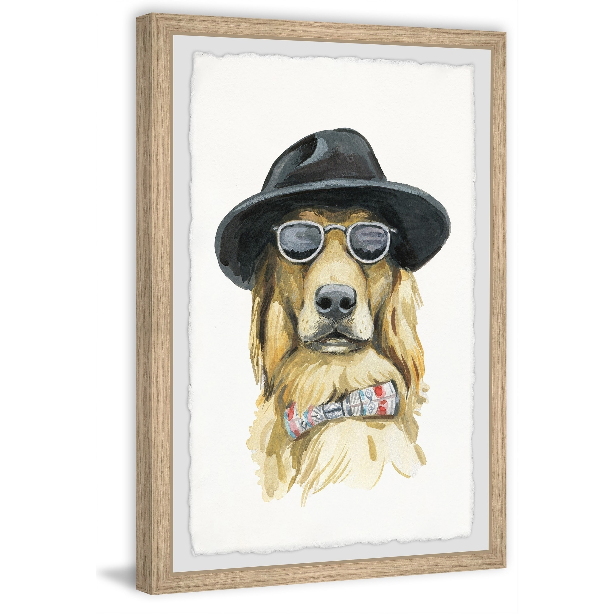 Designart "Dog Lounging on the Beach With Sunglasses III" Animals Framed Art Print