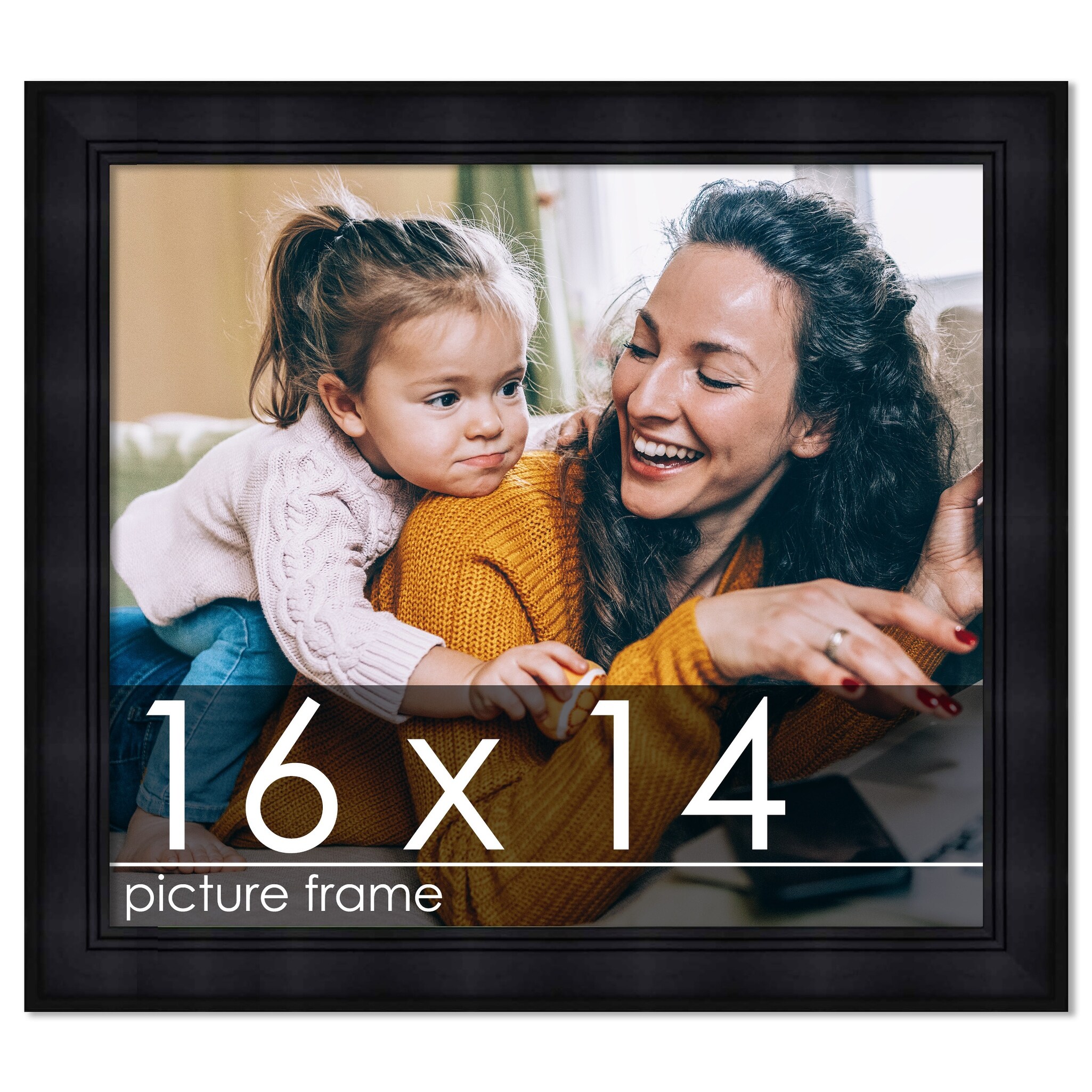 16x14 Frame Black Contemporary Wood Picture Frame - UV Resistant Acrylic, Acid-Free Backing, & Hanging Hardware Included