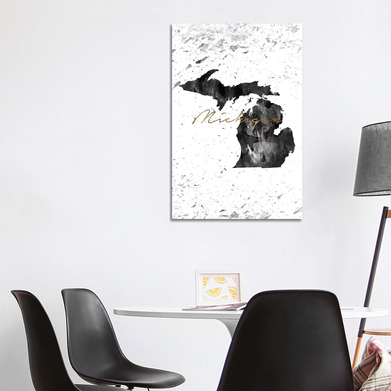 iCanvas "Michigan Black And White Gold" by WallDecorAddict Canvas Print